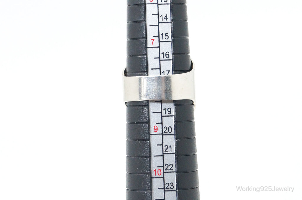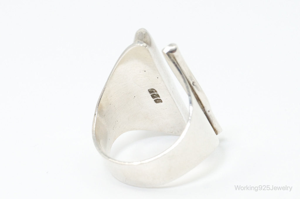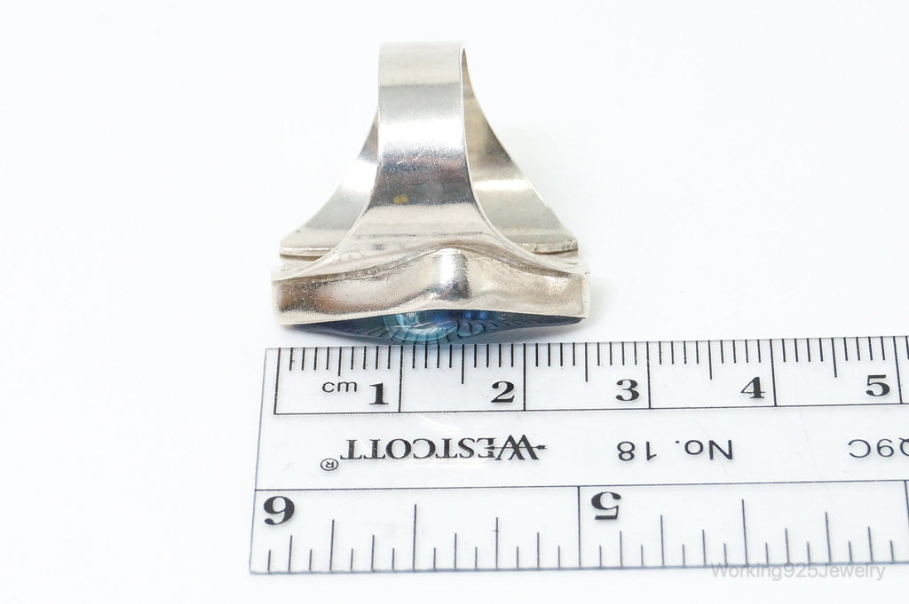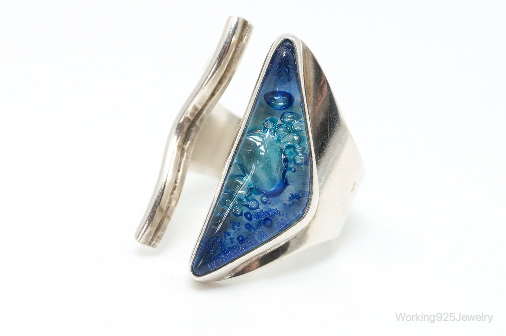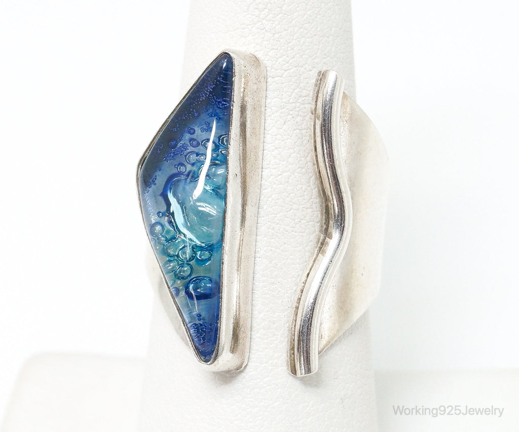 Vintage Blue Dichroic Glass Modernist Sterling Silver Wrap Ring SZ 8.25