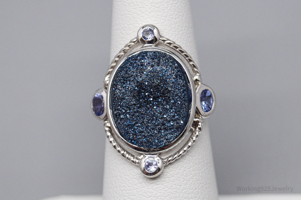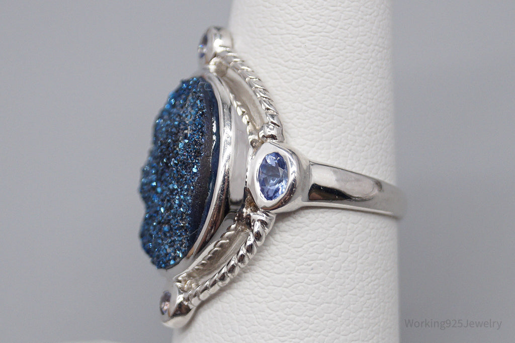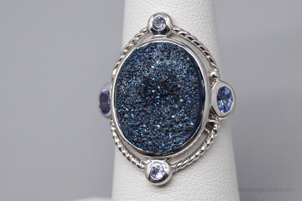 Vintage Blue Druzy Quartz & Tanzanite Sterling Silver Ring - Size 6