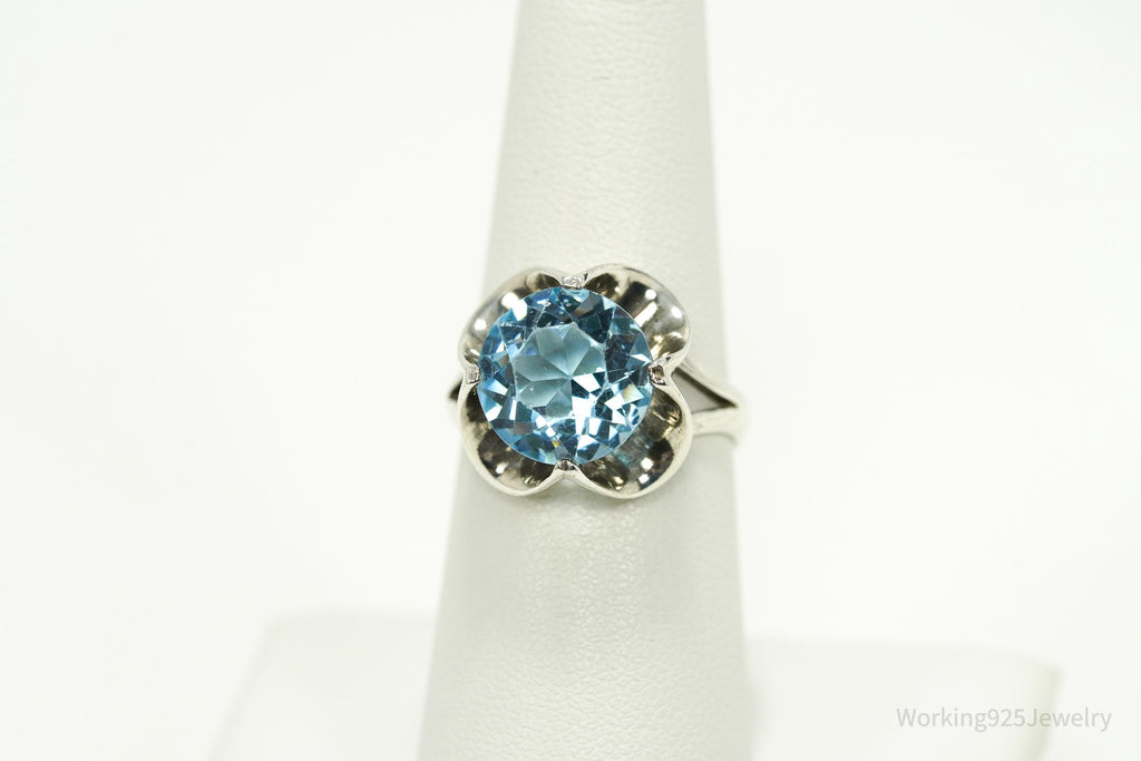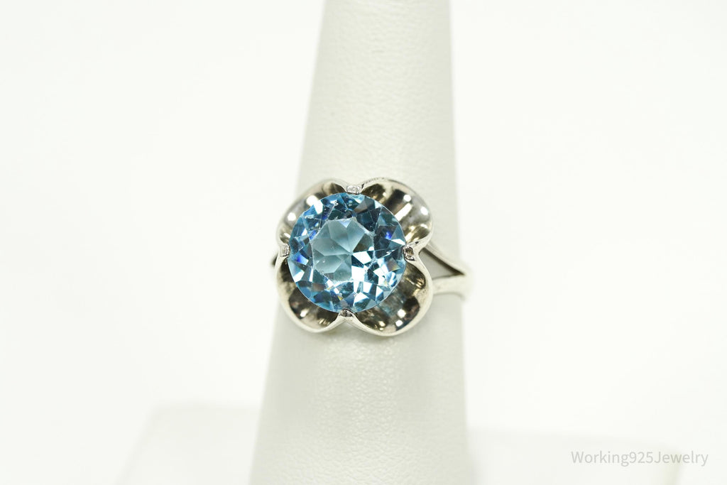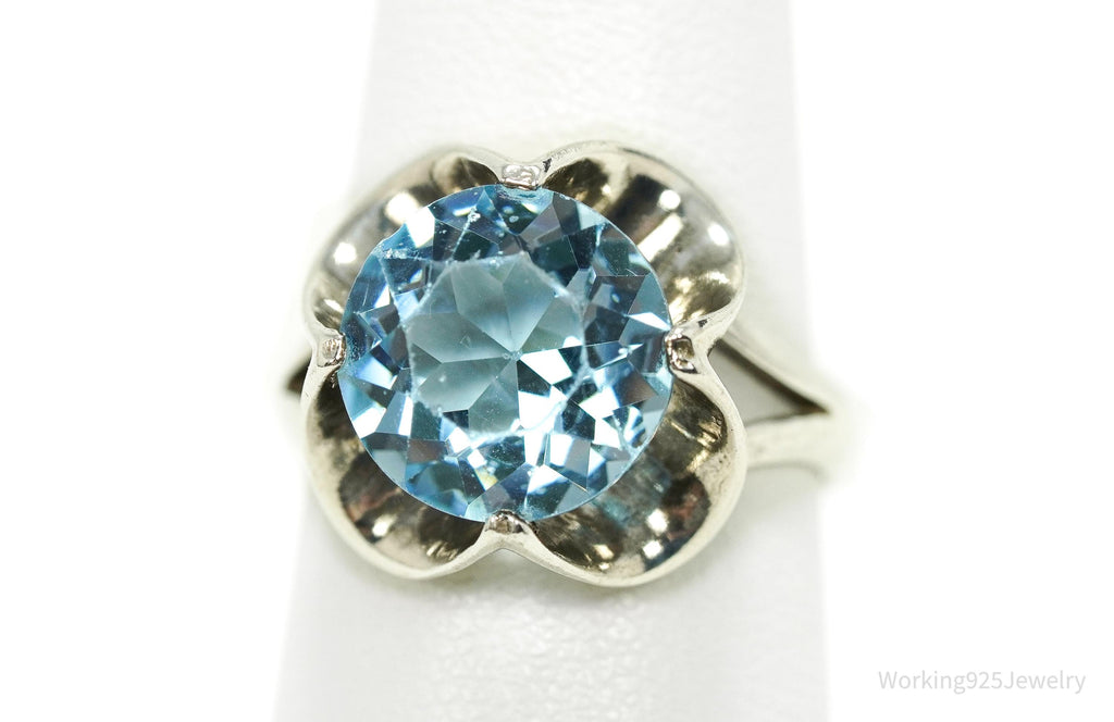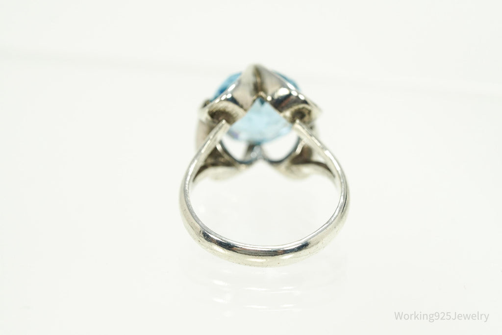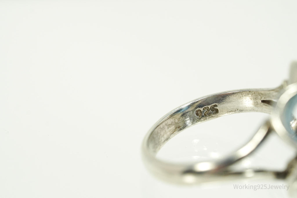 Vintage Blue Glass Stone Sterling Silver Ring - Size 6.75