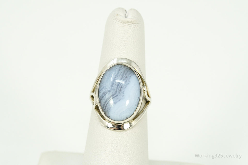 Vintage Blue Lace Agate Sterling Silver Ring - Size 6.25