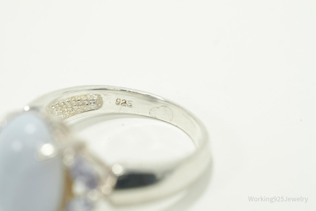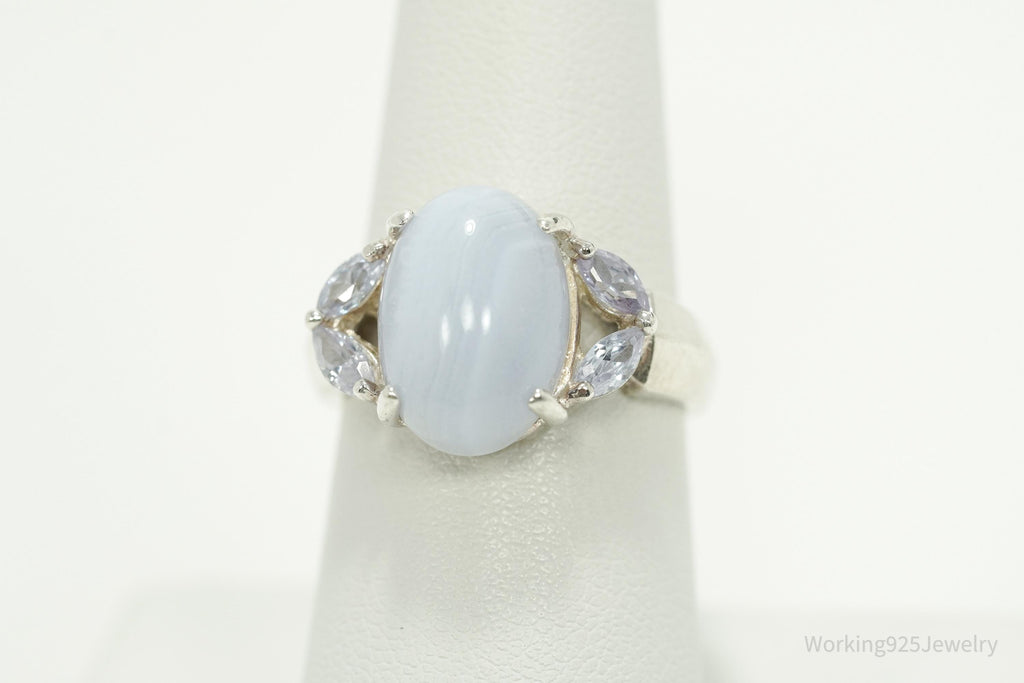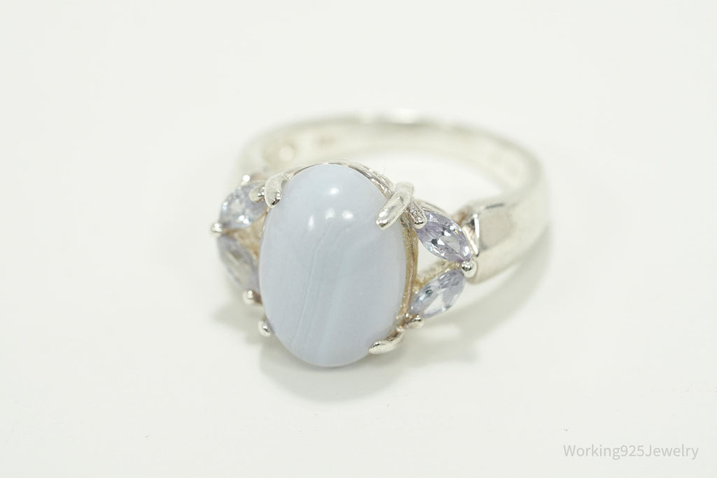 Vintage Blue Lace Agate & Tanzanite Sterling Silver Ring - Size 7.5