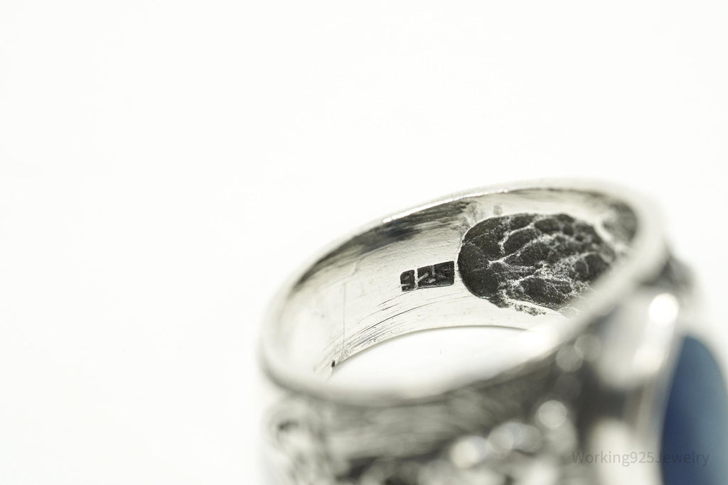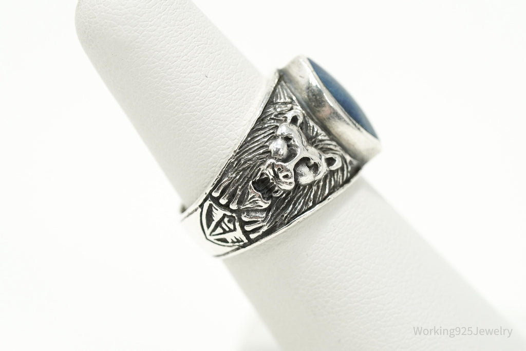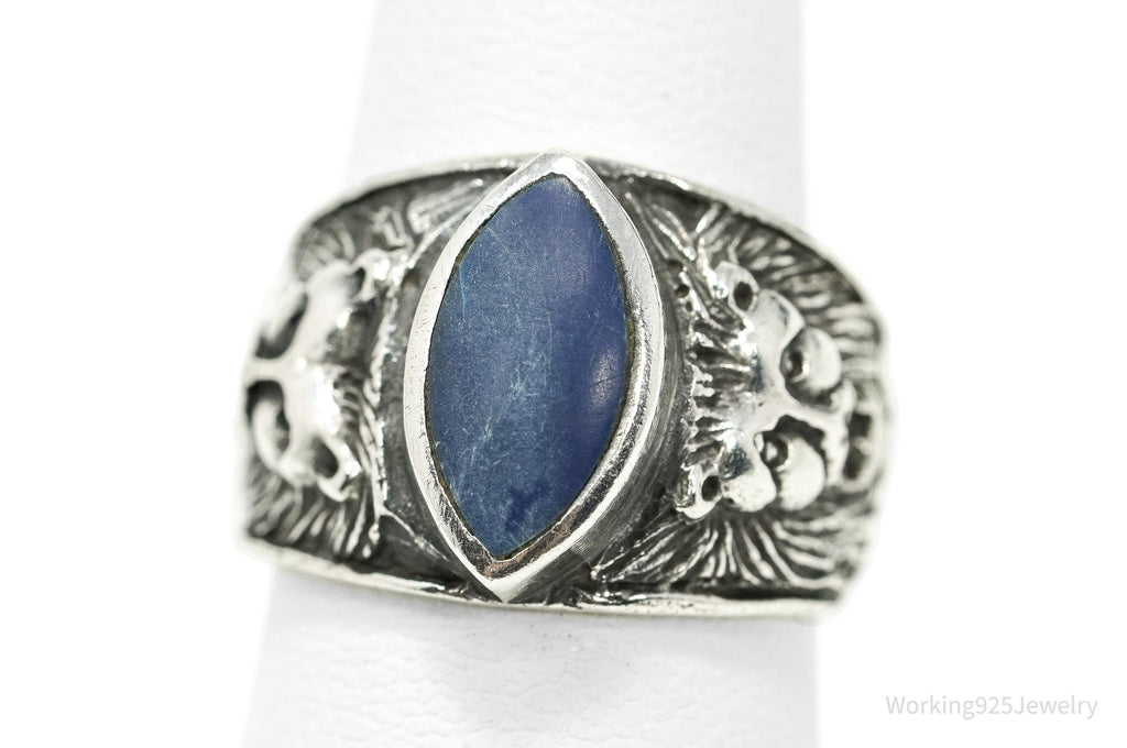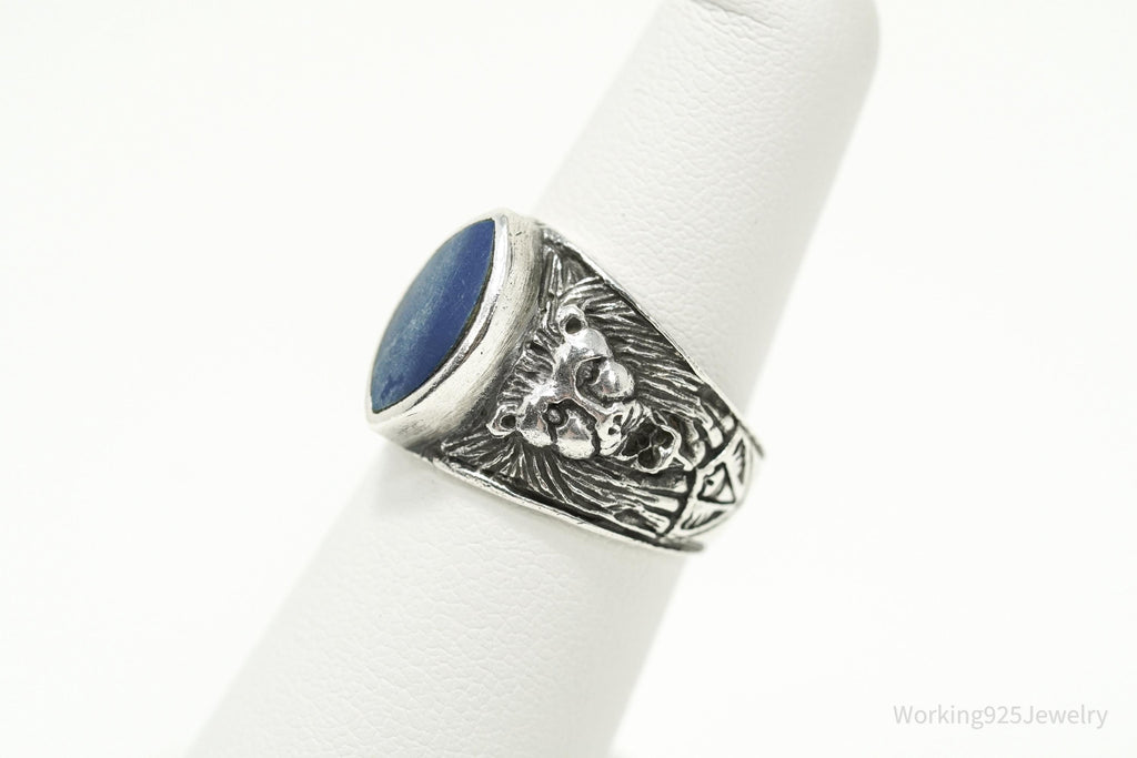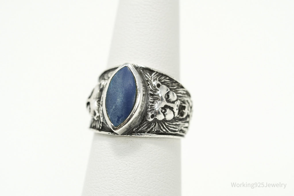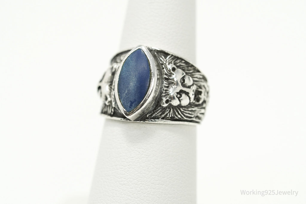 Vintage Blue Lapis Lazuli Lion Head Sterling Silver Ring - Size 6.5