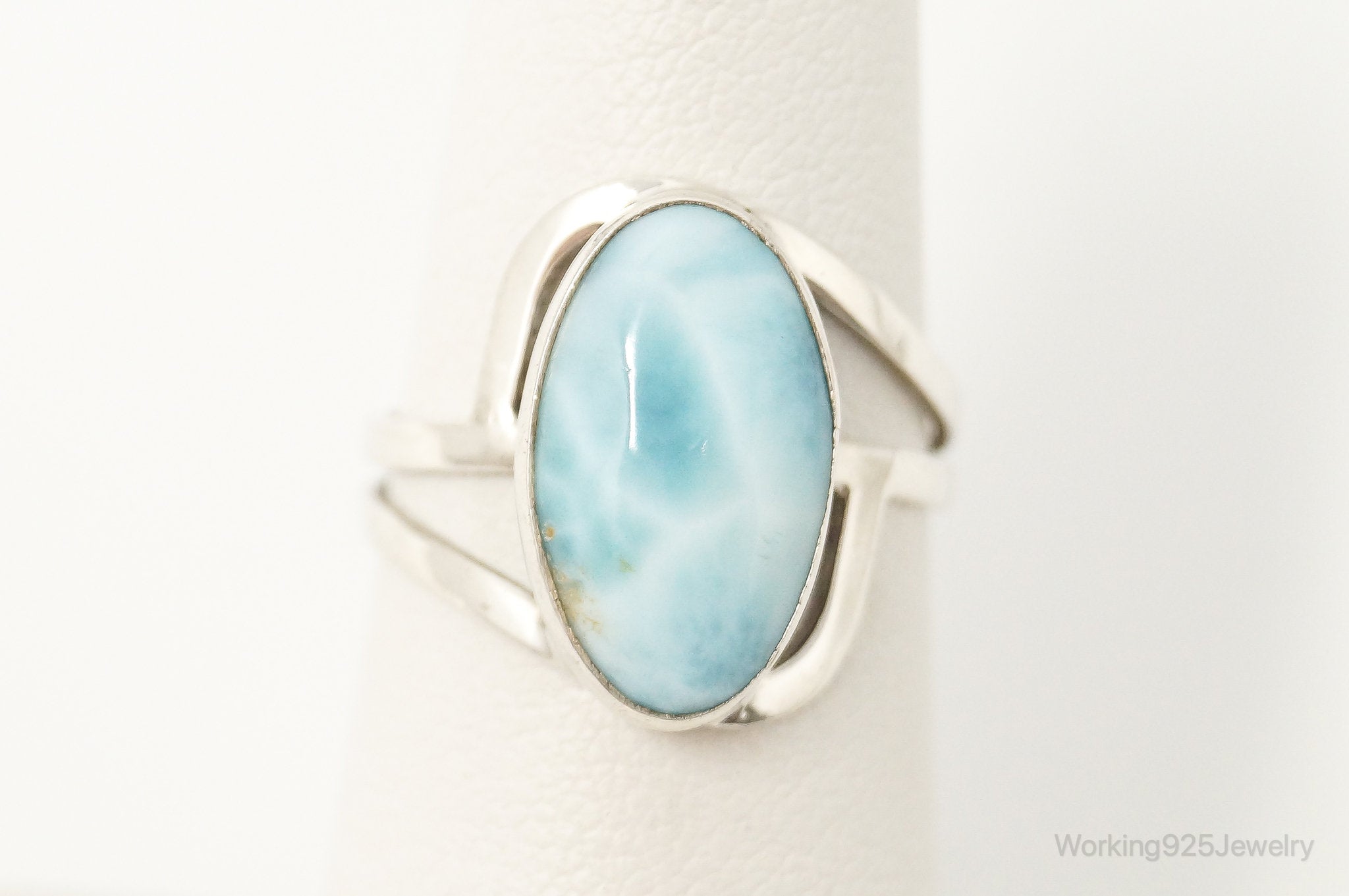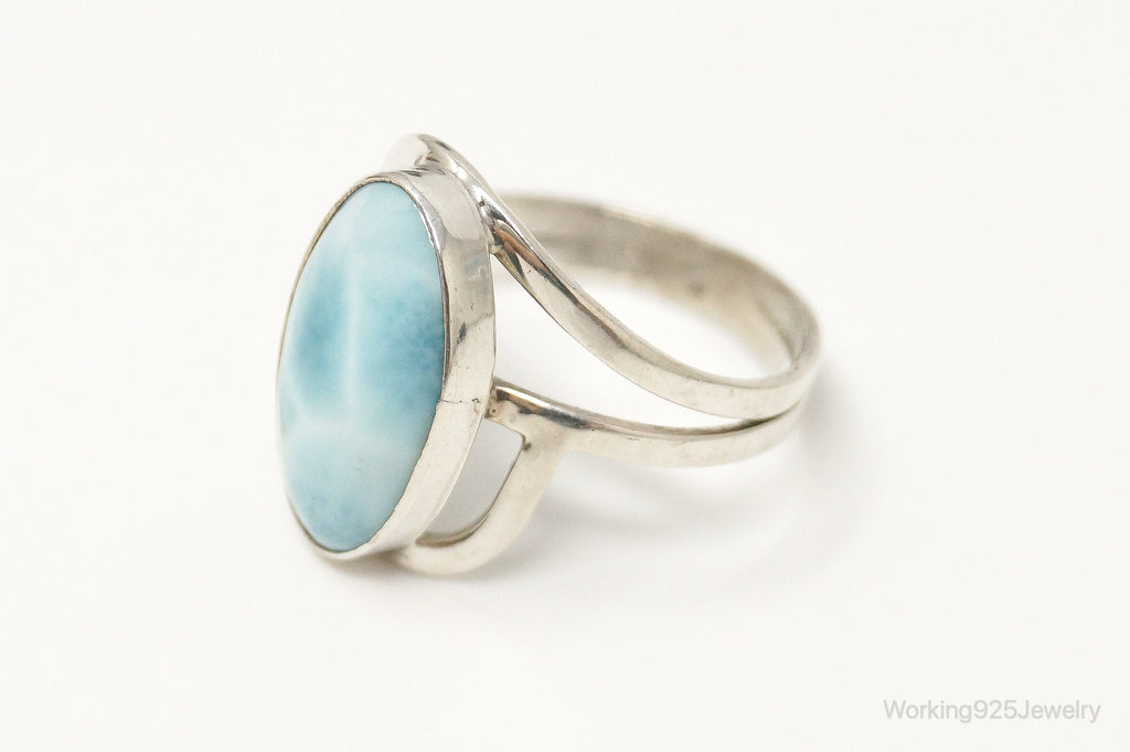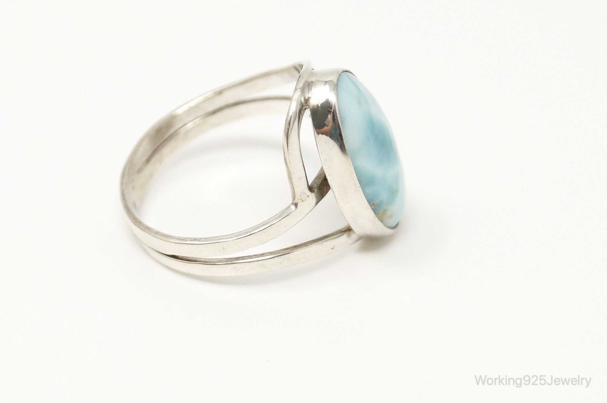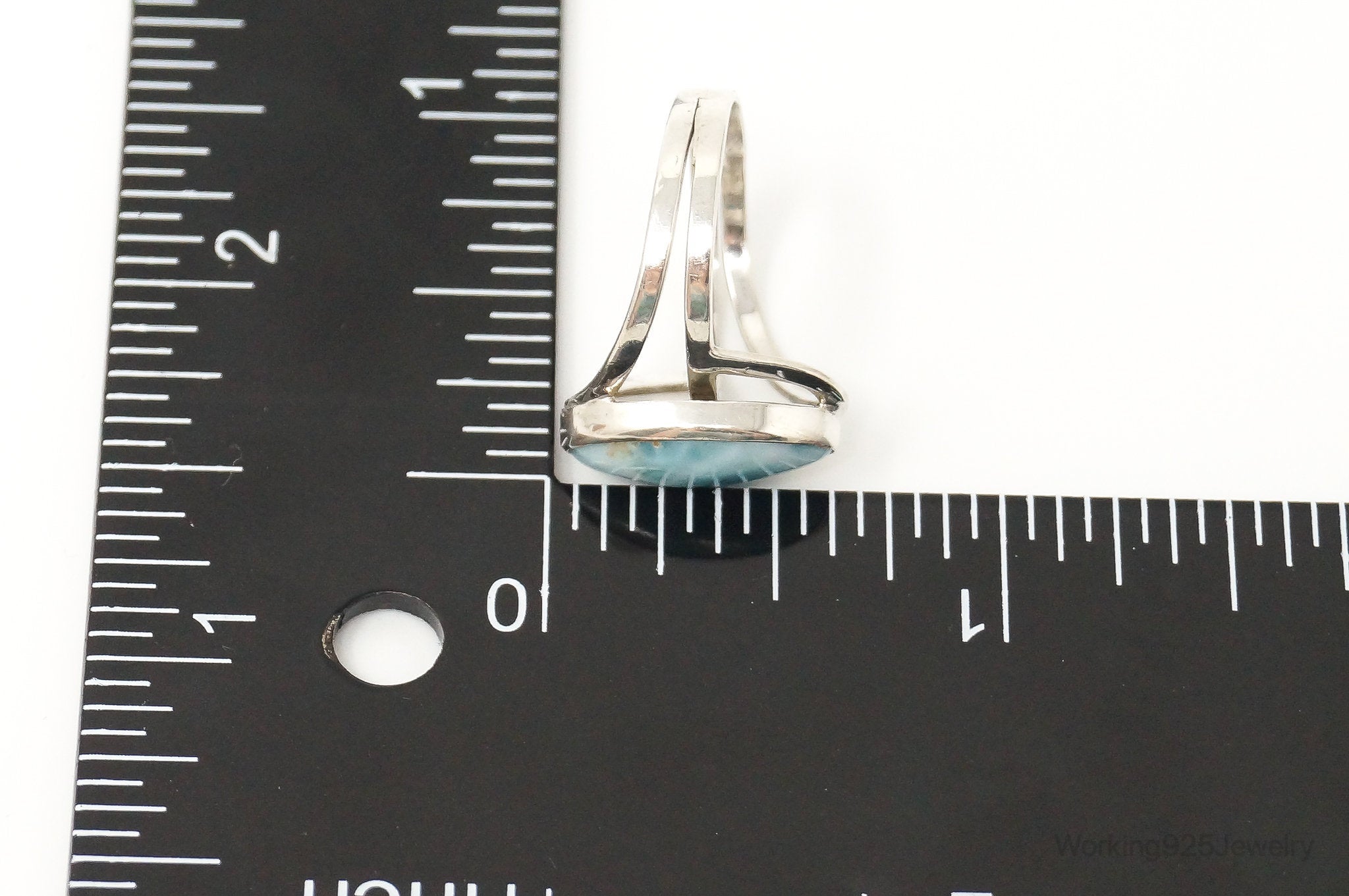 Vintage Blue Larimar Modernist Sterling Silver Ring - Size 6.25