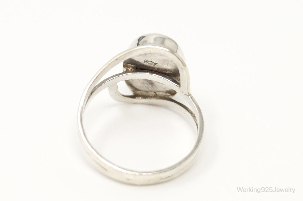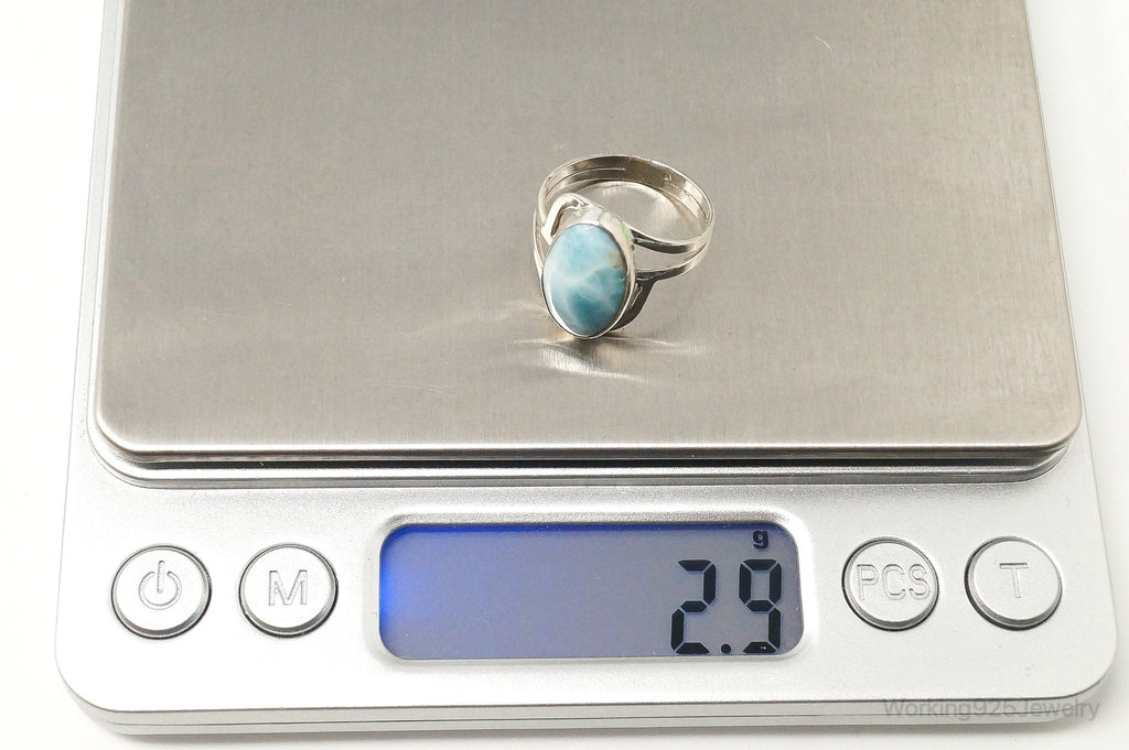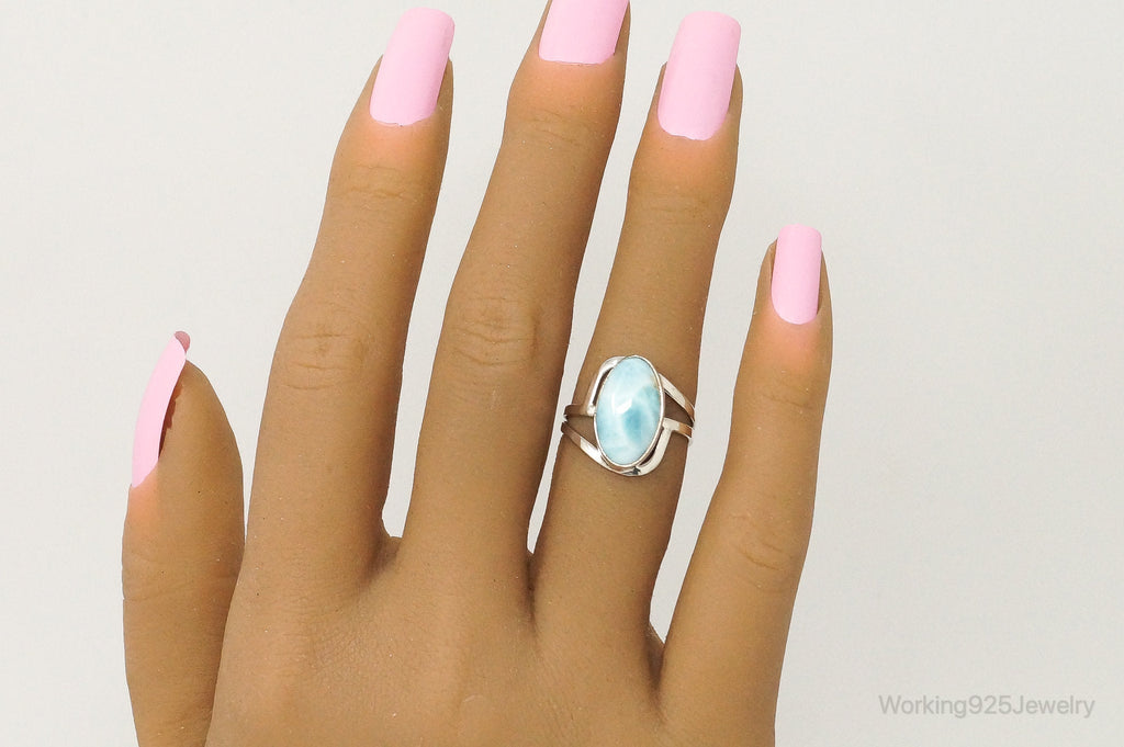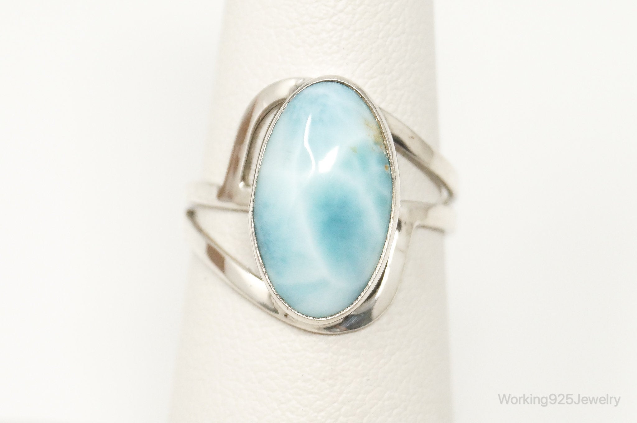 Vintage Blue Larimar Modernist Sterling Silver Ring - Size 6.25
