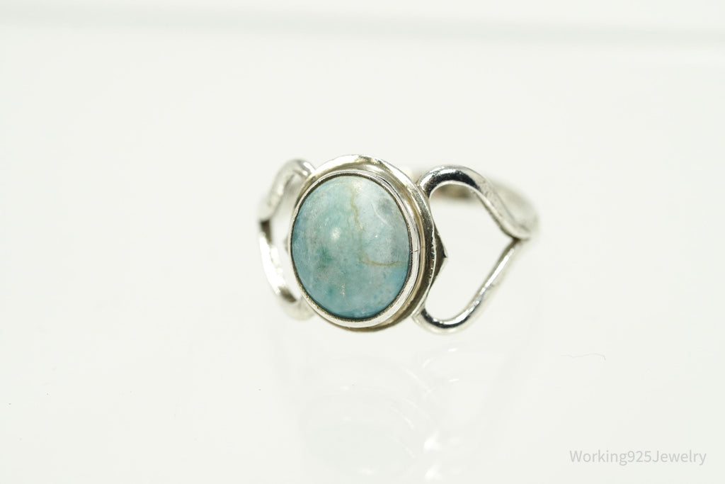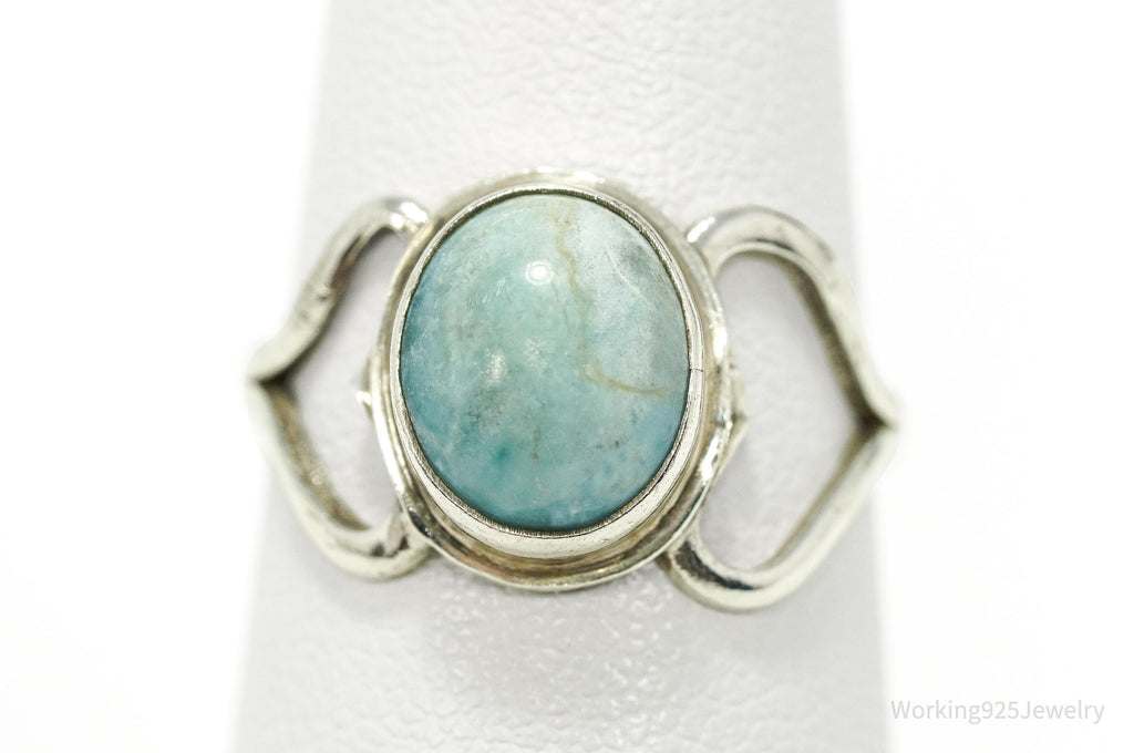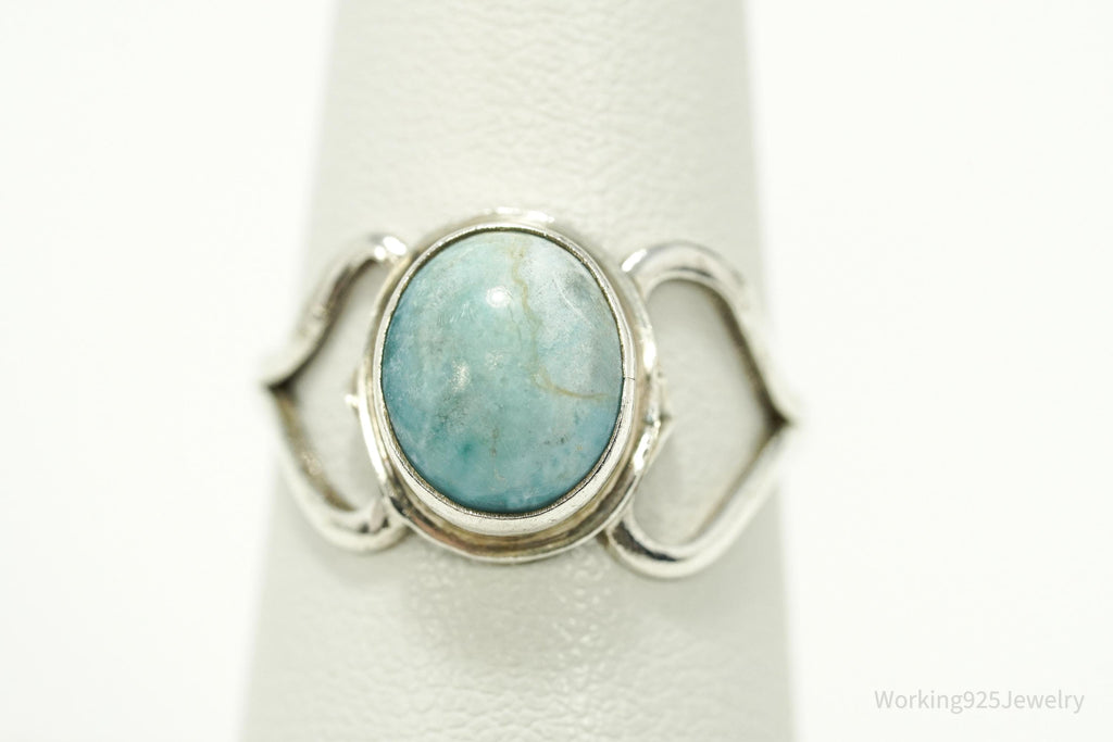 Vintage Blue Larimar Modernist Style Sterling Silver Ring - Size 6.25