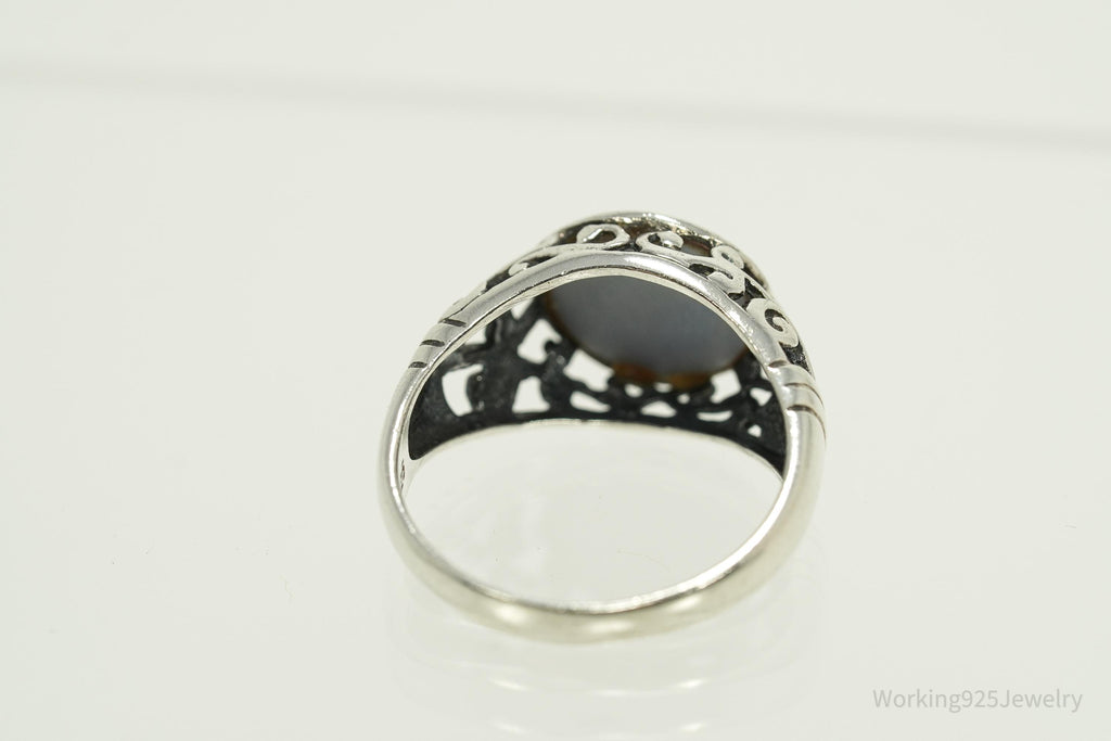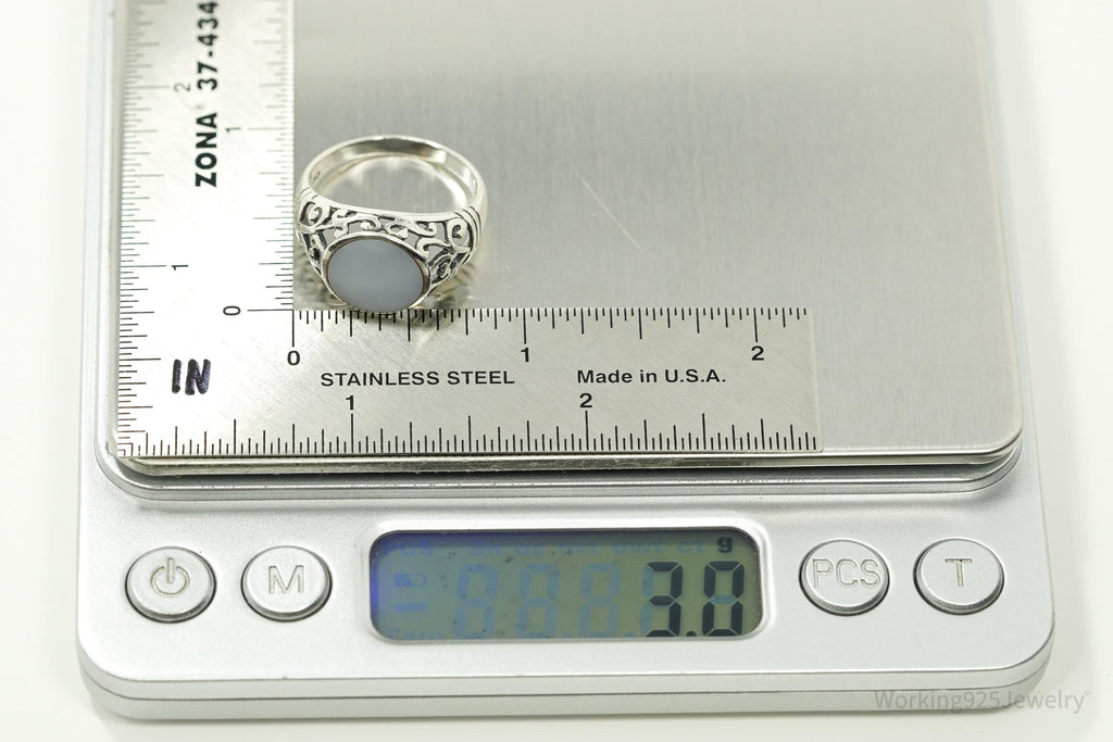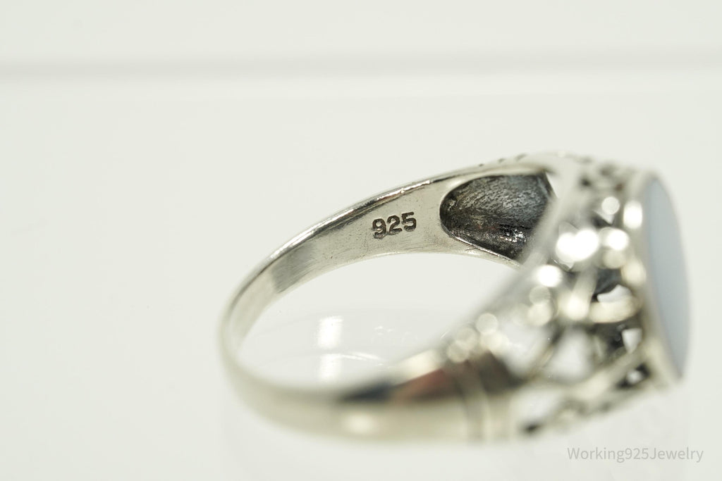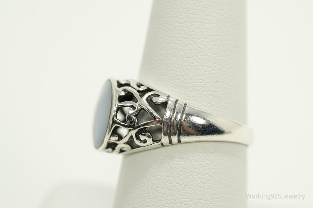Vintage Blue Mother Of Pearl Sterling Silver Ring - Size 8.25