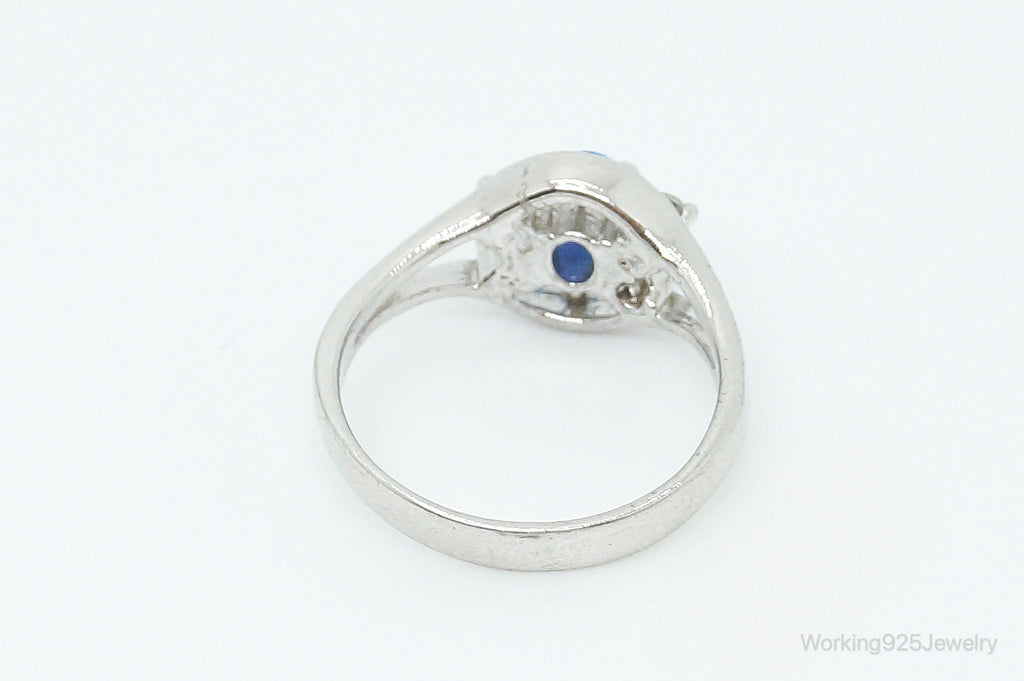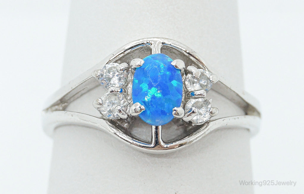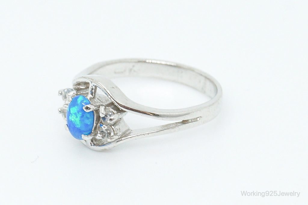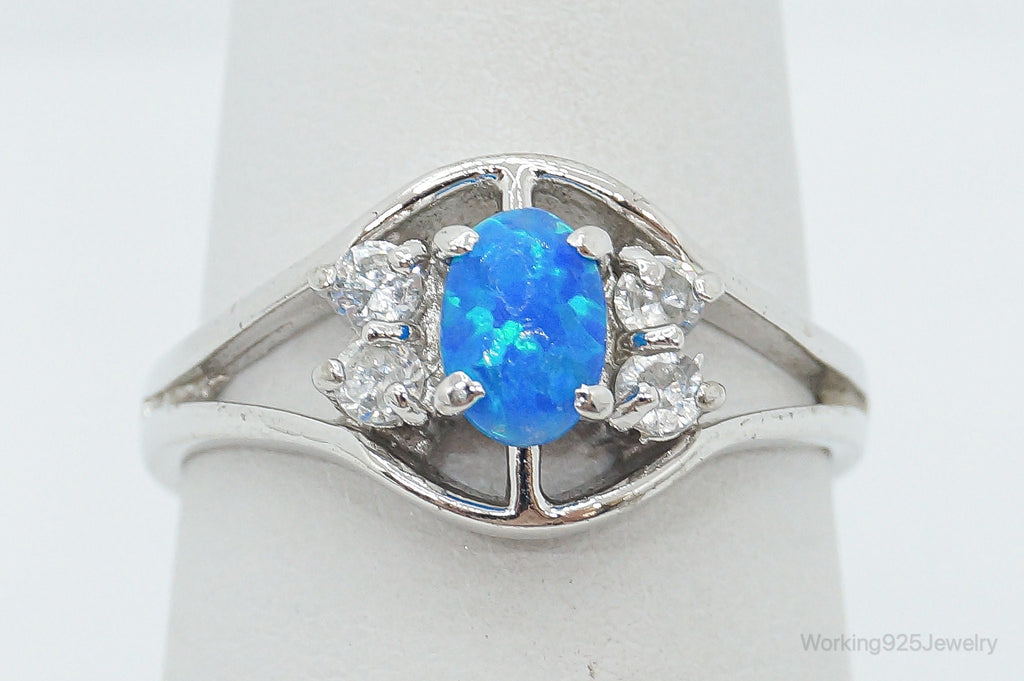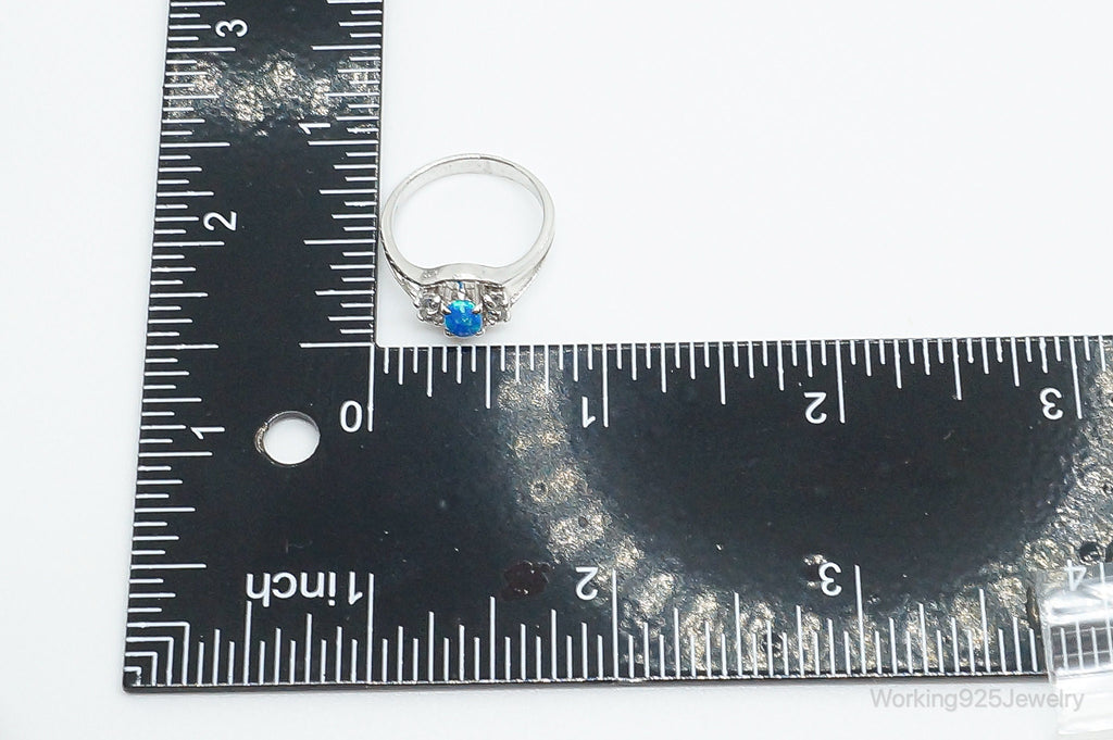 Vintage Blue Opal Cubic Zirconia Sterling Silver Ring - Size 6.5