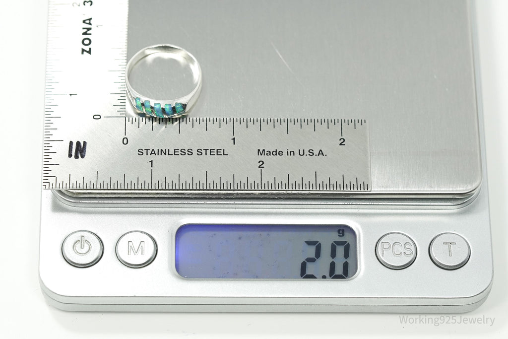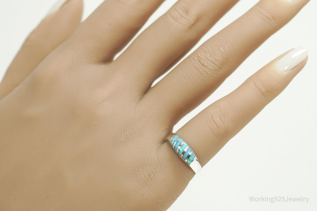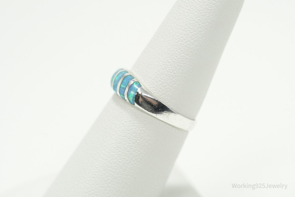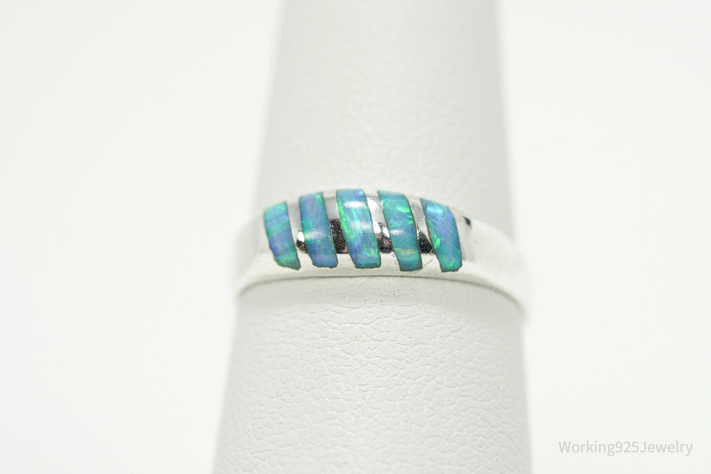 Vintage Blue Opal Inlay 950 Silver Ring - Size 6.5