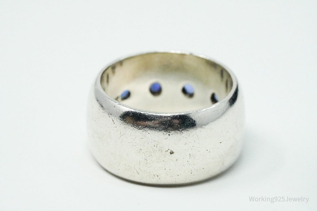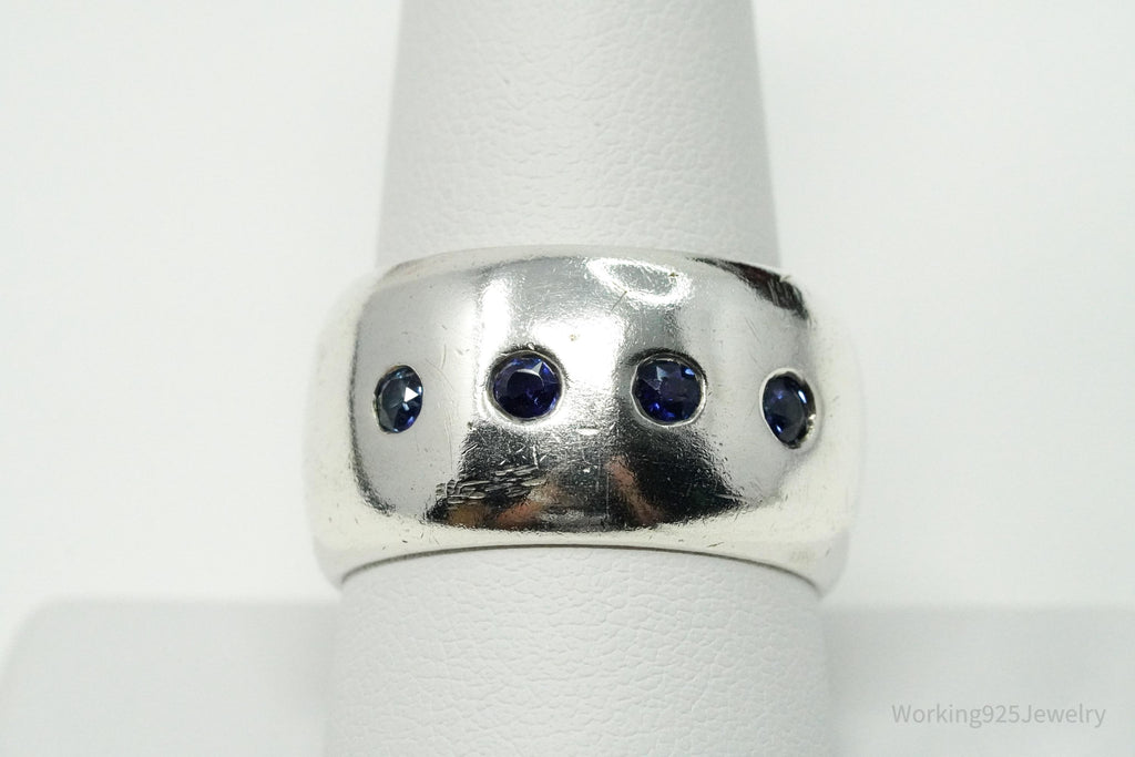 Vintage Blue Sapphire Mexico Sterling Silver Band Ring - Size 10