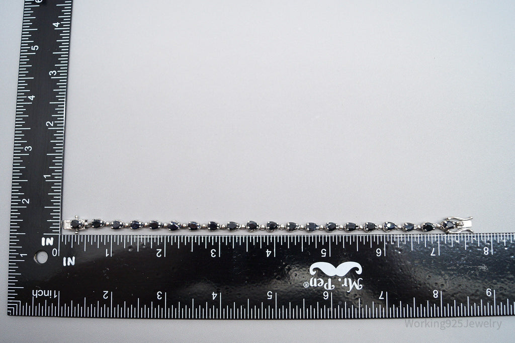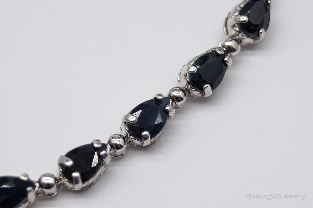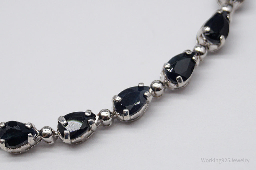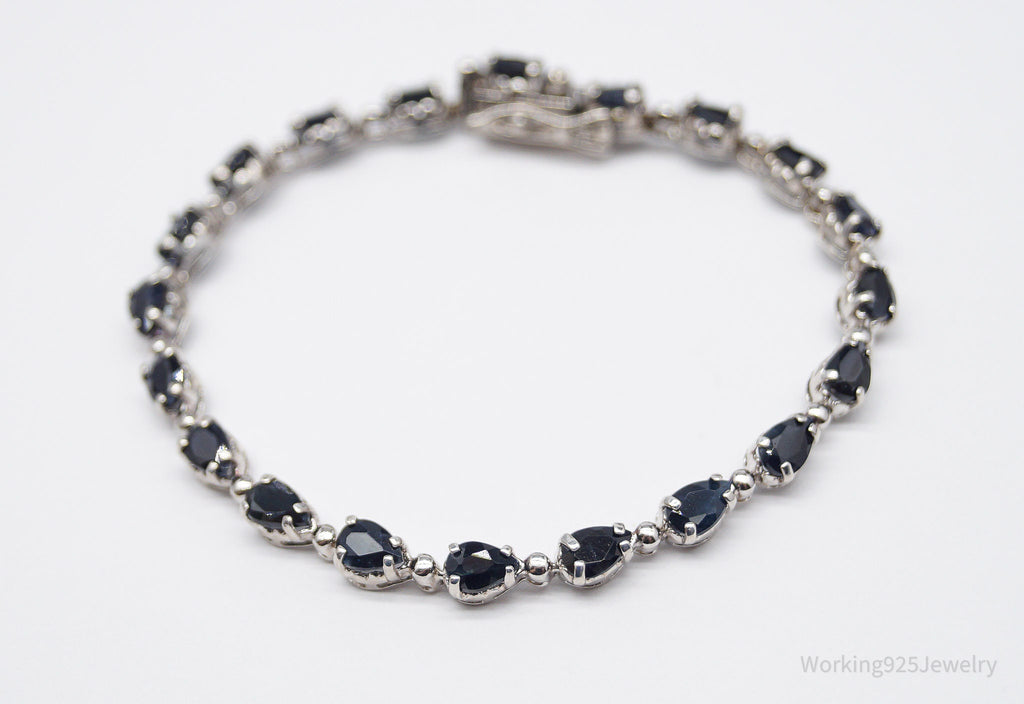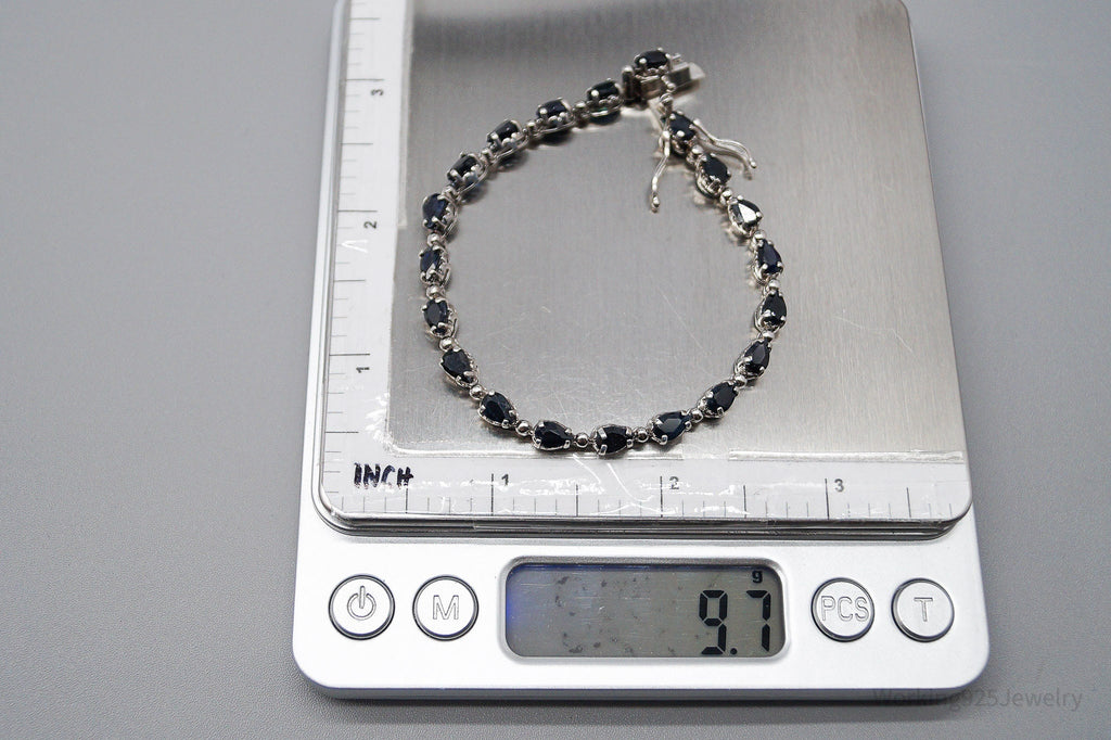 Vintage Blue Sapphire Sterling Silver Tennis Bracelet - 7 5/8"
