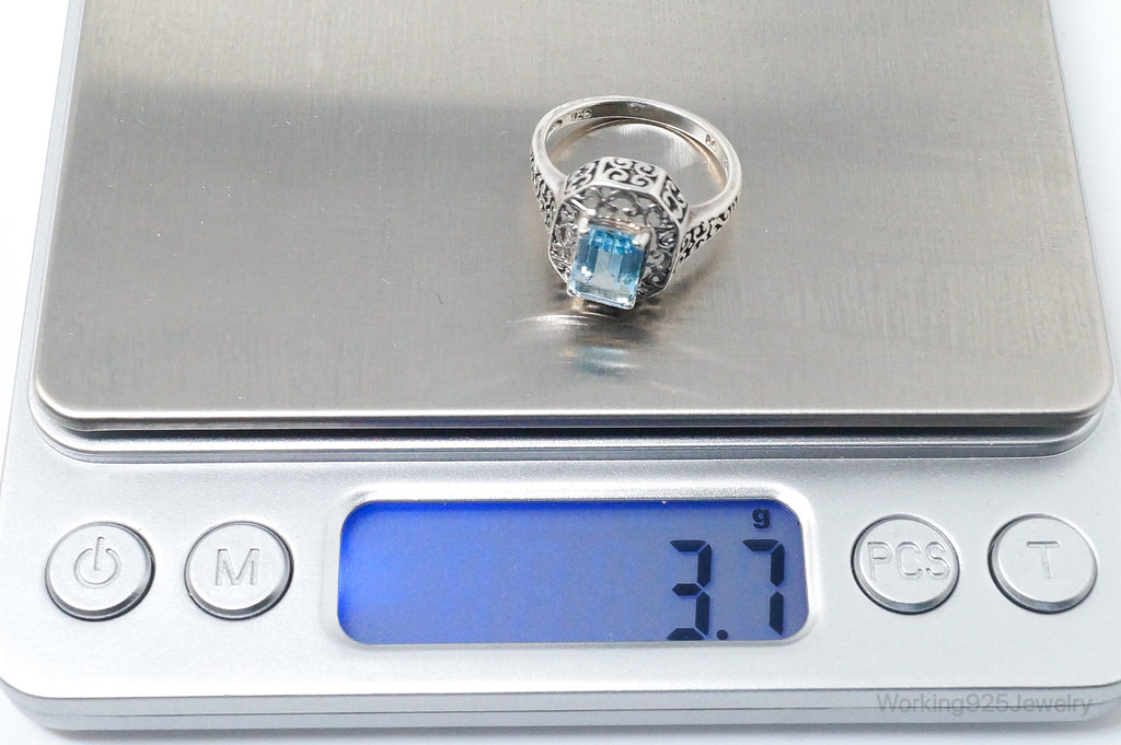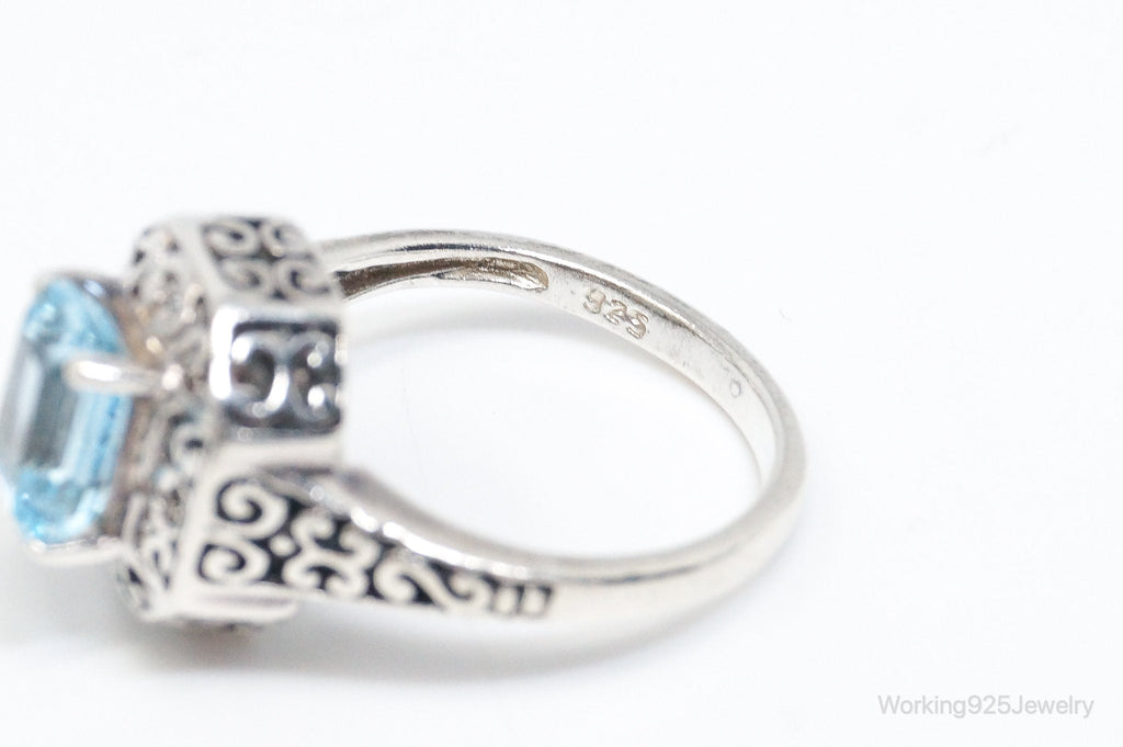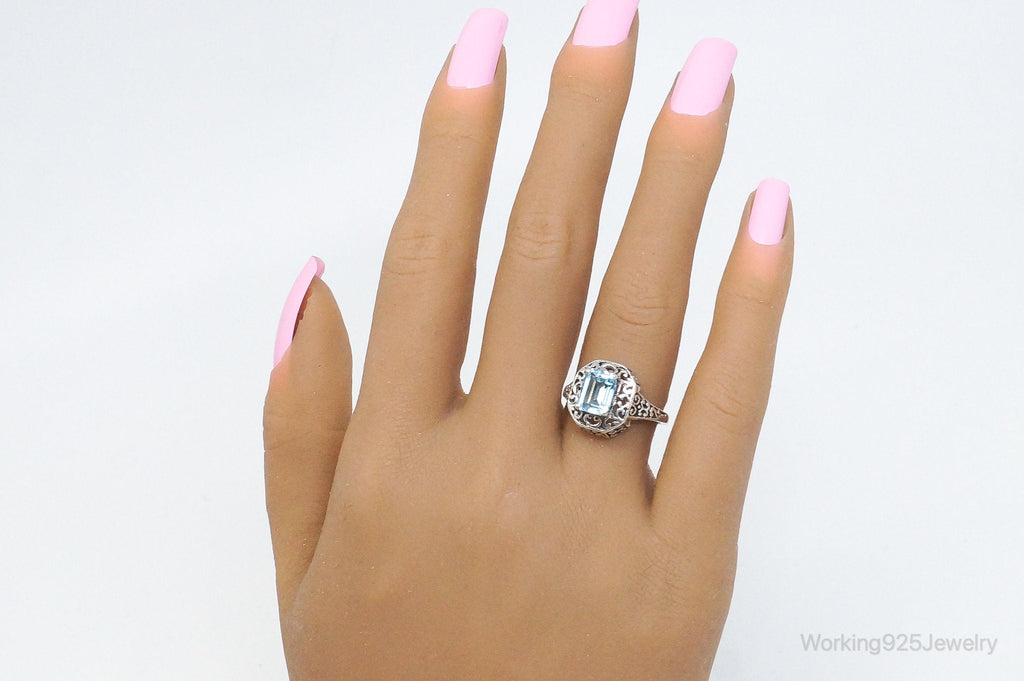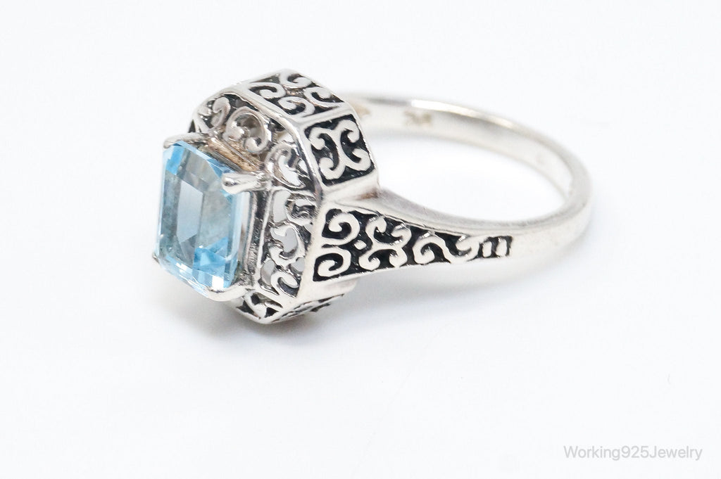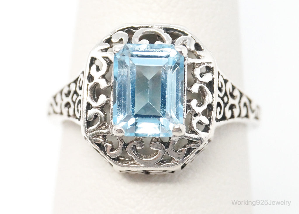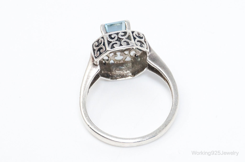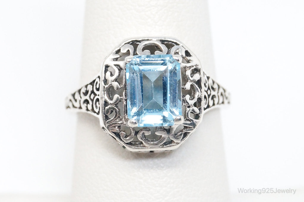 Vintage Blue Topaz Art Deco Sterling Silver Ring - Size 6.75