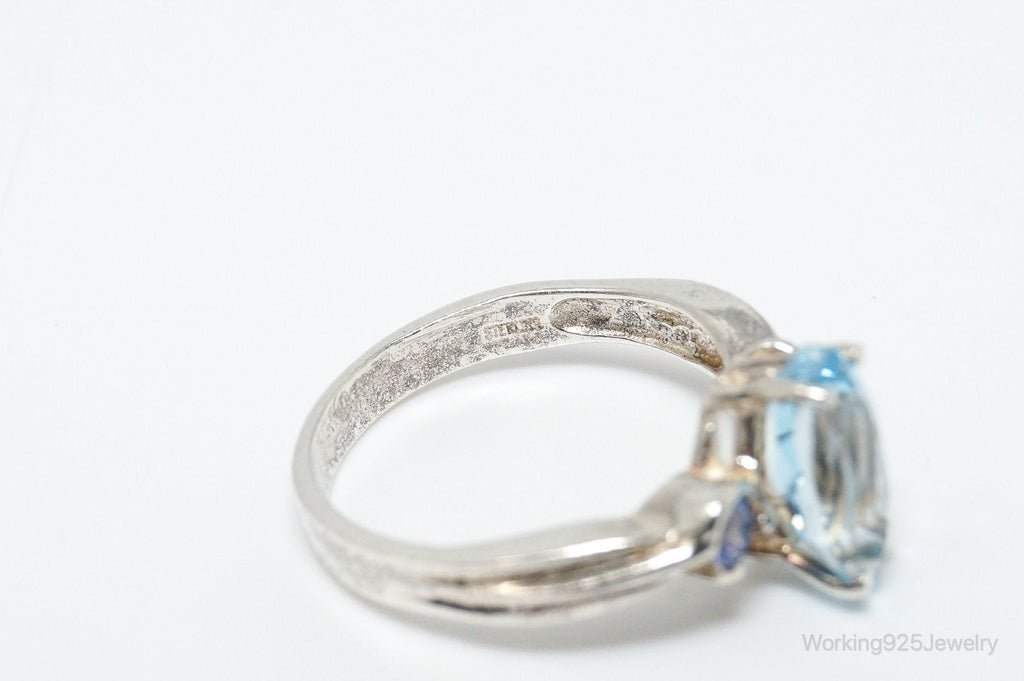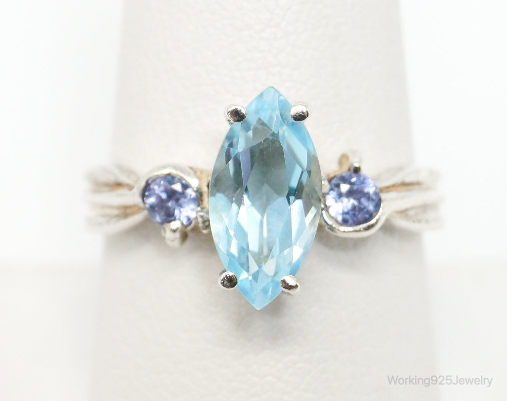 Vintage Blue Topaz Blue Cubic Zirconia Sterling Silver Ring - Size 8.5