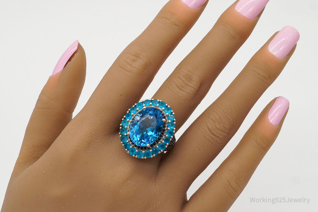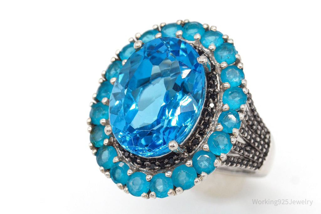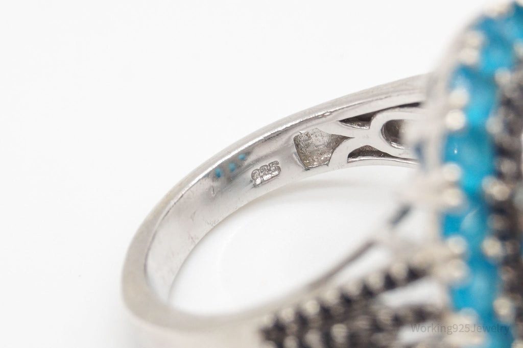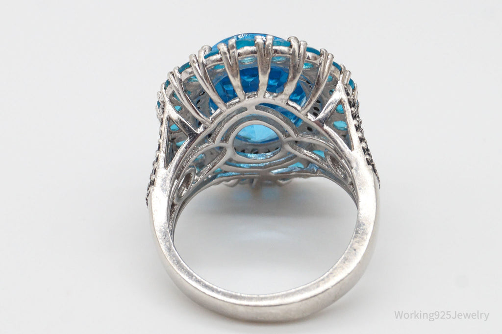 Vintage Blue Topaz Blue Stones Black Spinel Sterling Silver Ring - Size 8.75