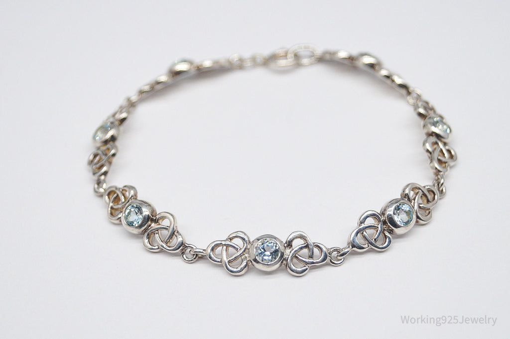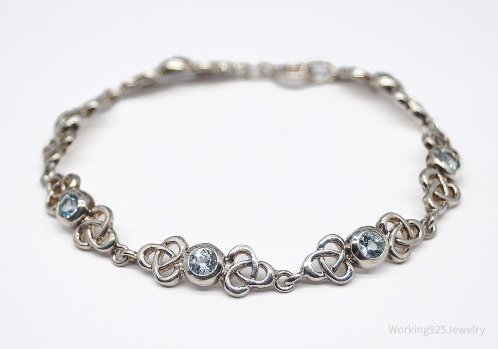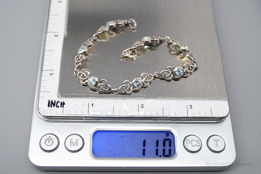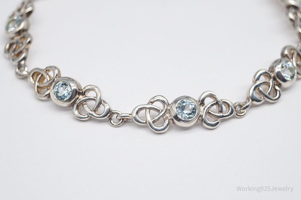 Vintage Blue Topaz Celtic Knots Sterling Silver Bracelet - 7 3/8"