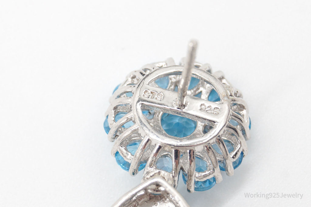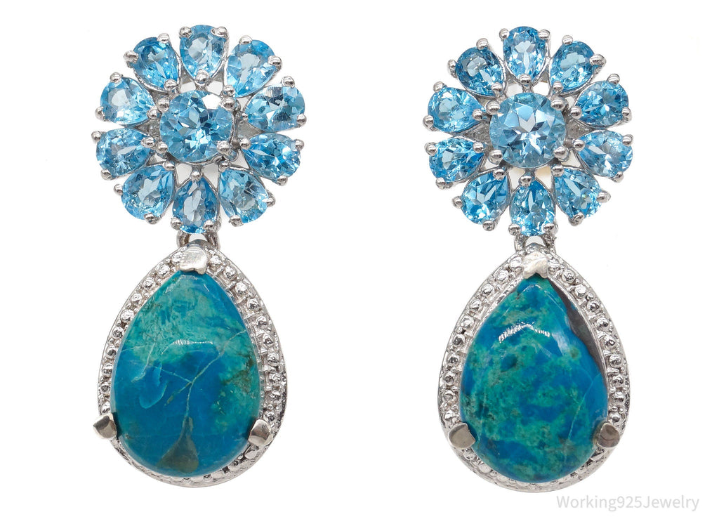 Vintage Blue Topaz Chrysocolla Sterling Silver Flower Earrings