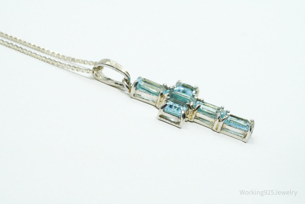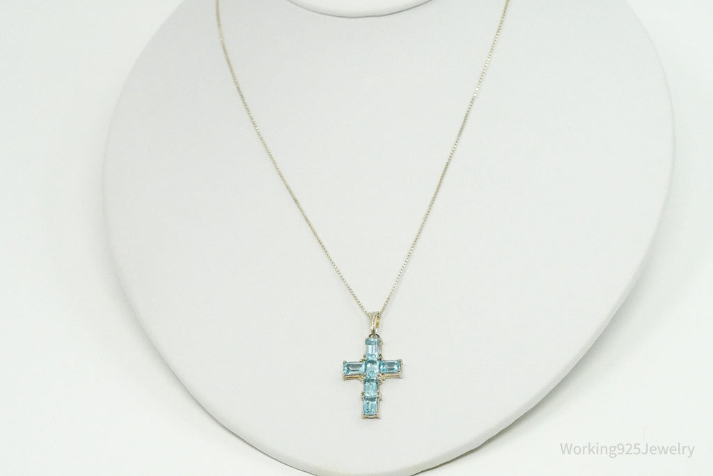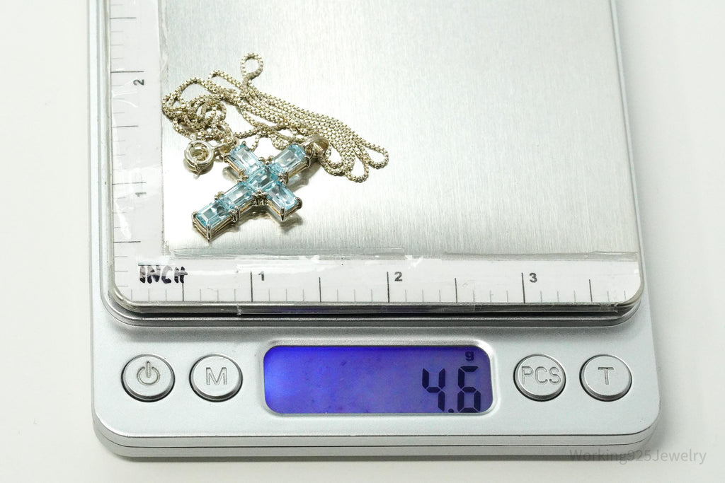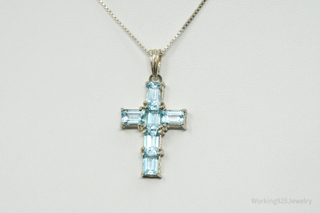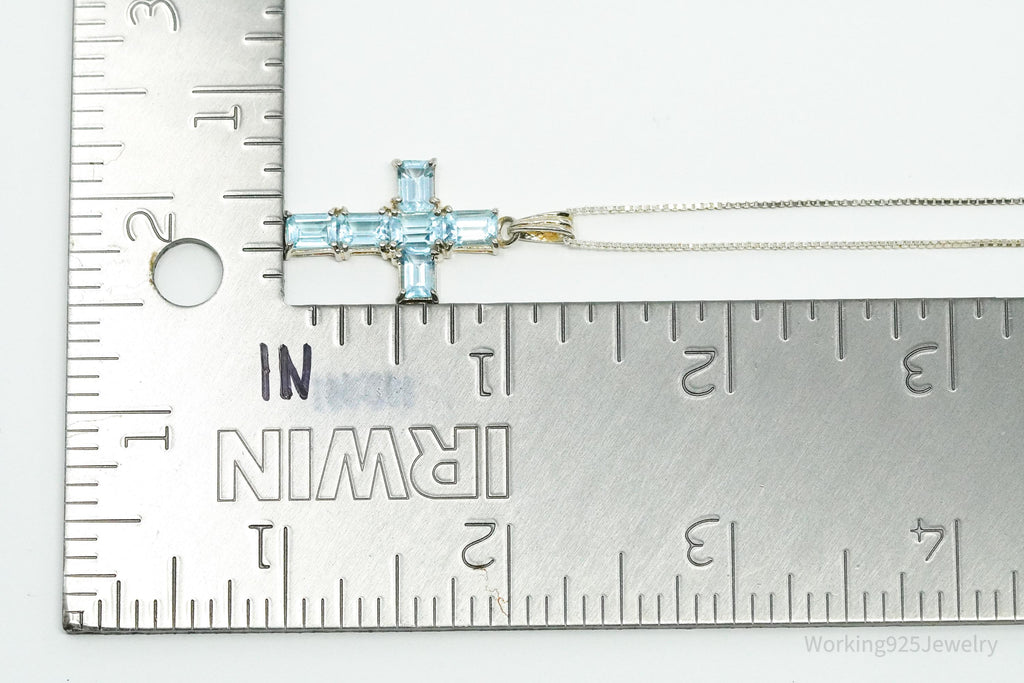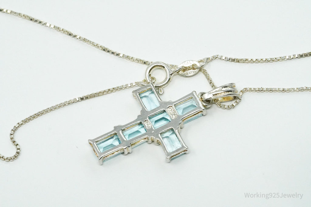 Vintage Blue Topaz Cross Sterling Silver Necklace 18"