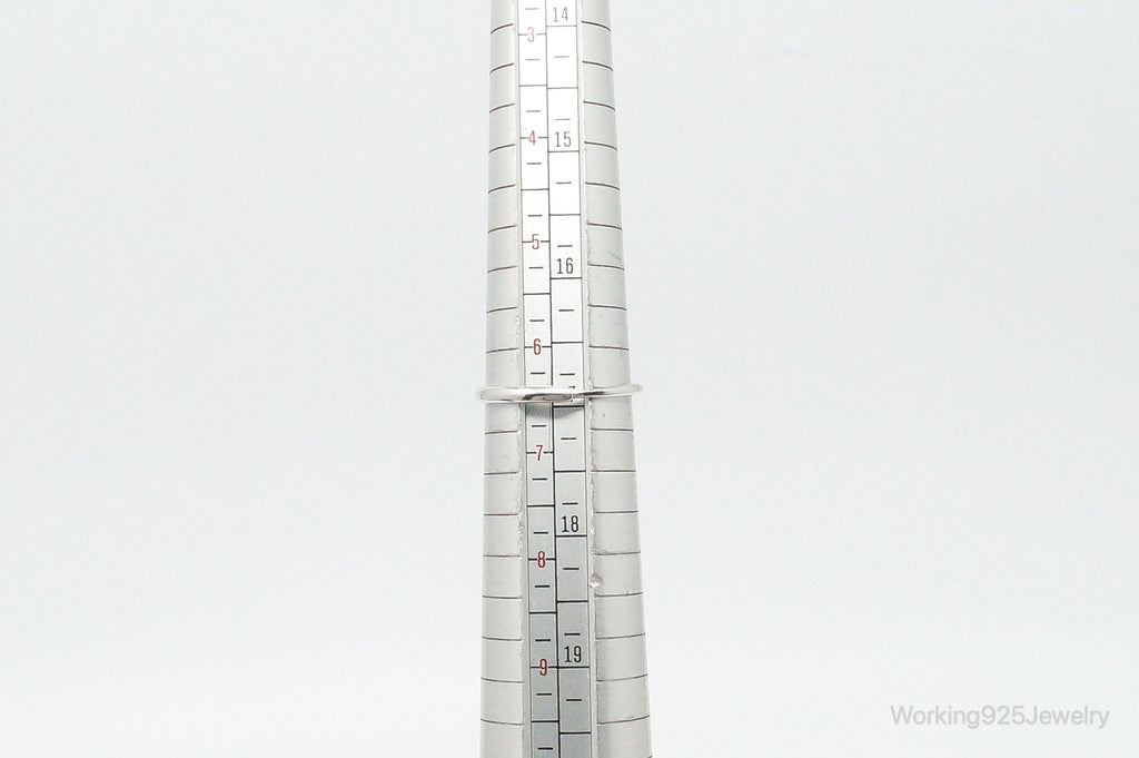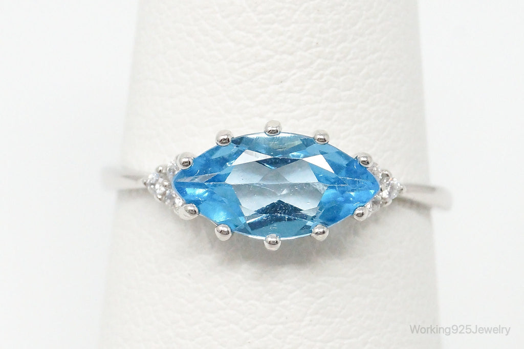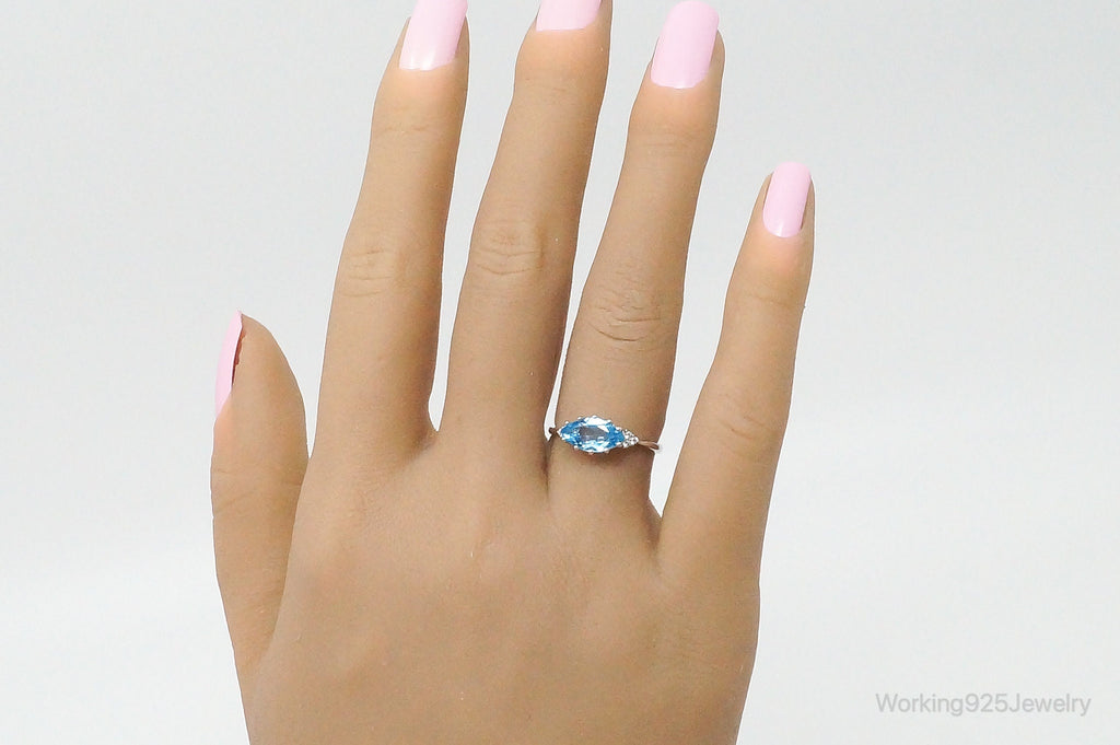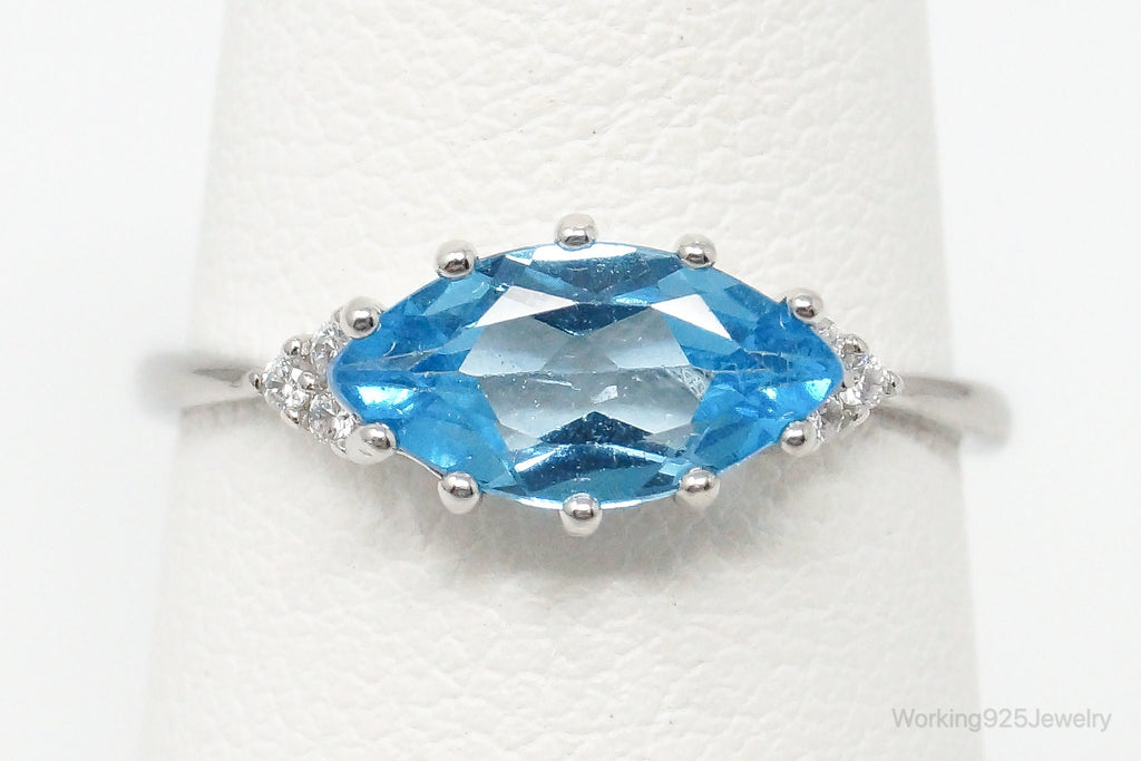 Vintage Blue Topaz Cubic Zirconia Sterling Silver Ring - Size 6.5 Adjustable