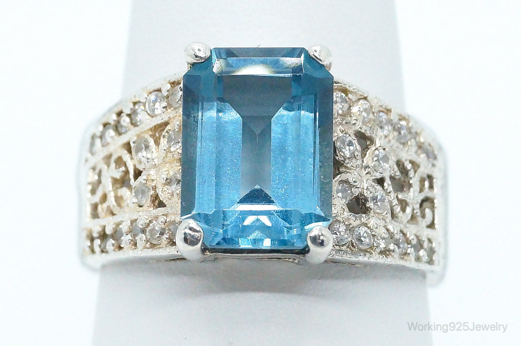 Vintage Blue Topaz Cubic Zirconia Sterling Silver Ring - Size 8.25