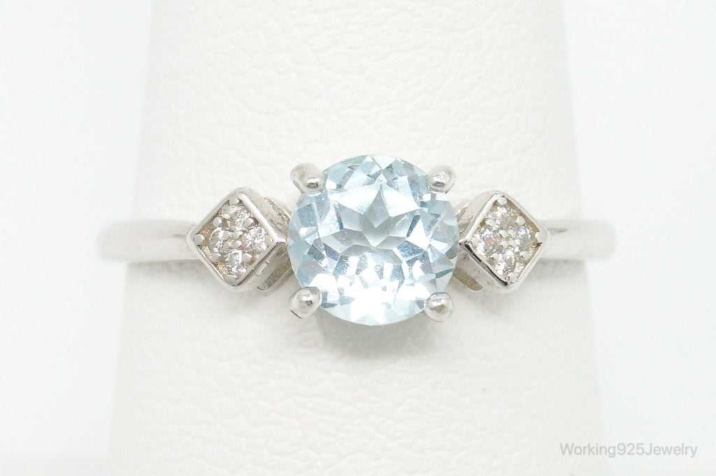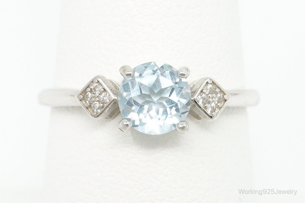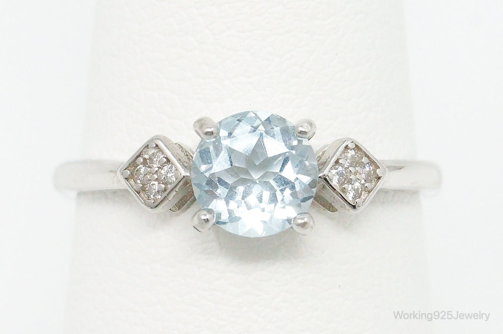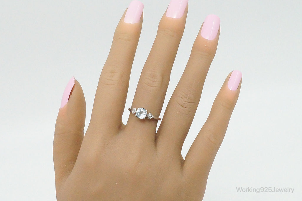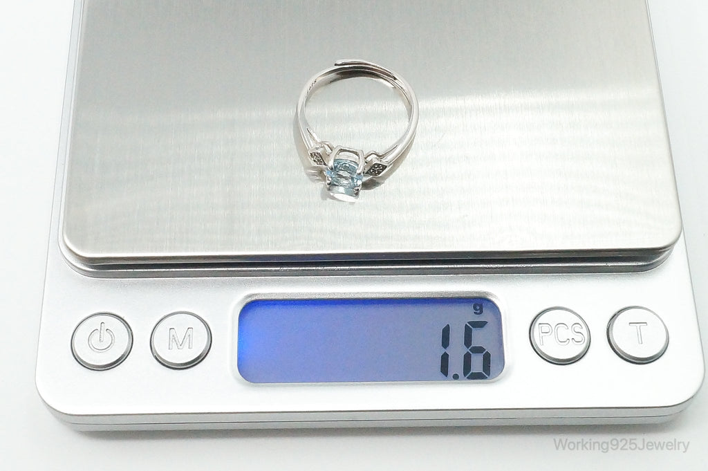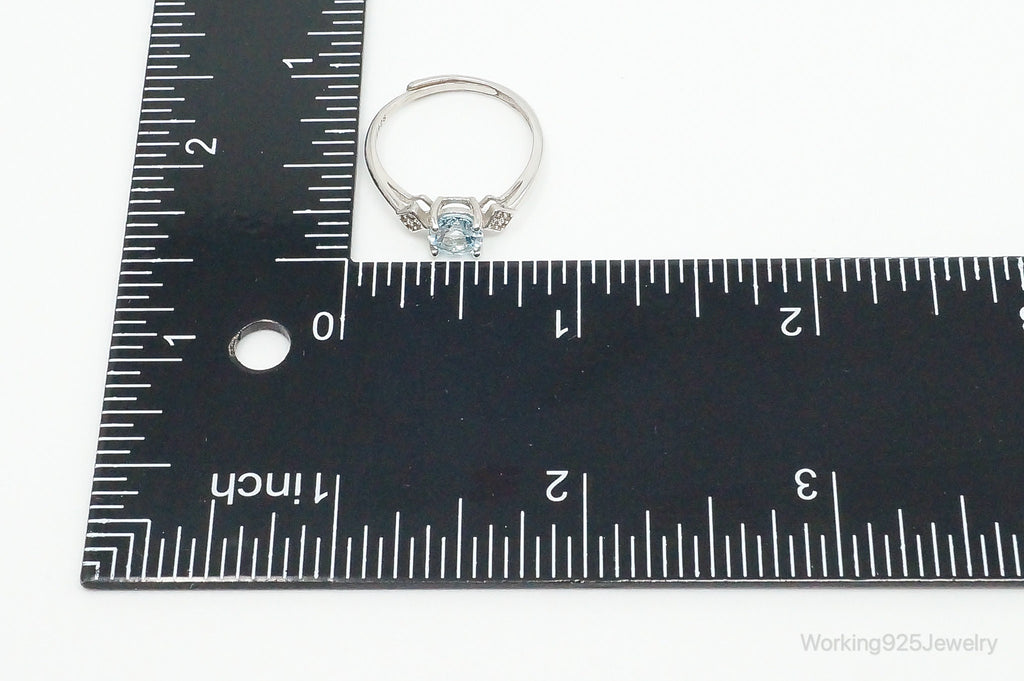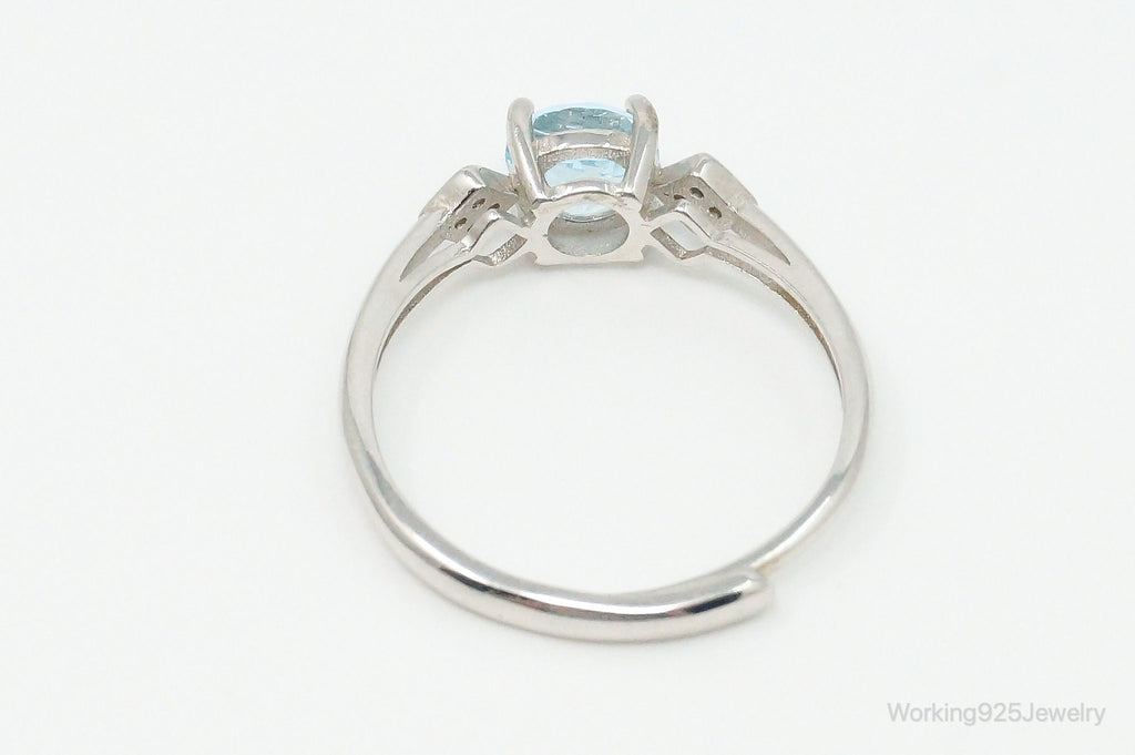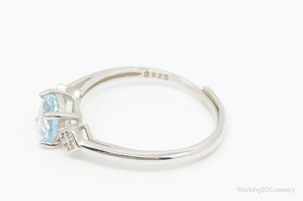 Vintage Blue Topaz Cubic Zirconia Sterling Silver Ring - Size 8 Adjustable