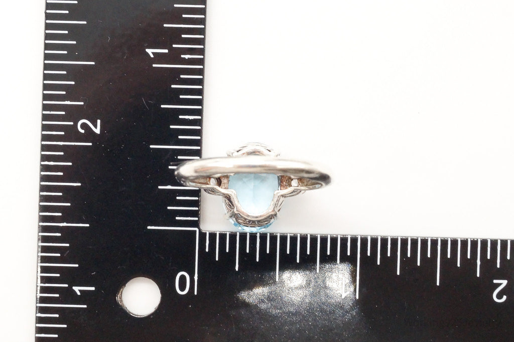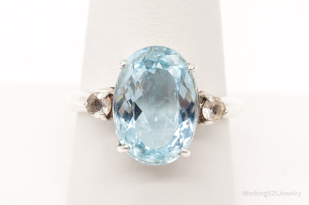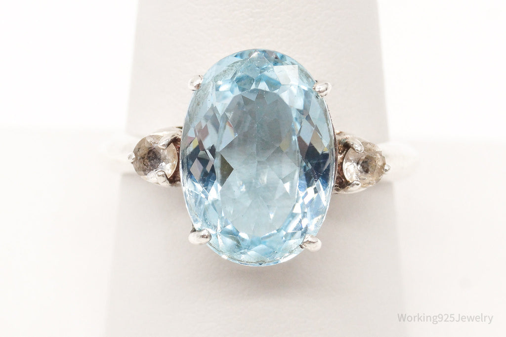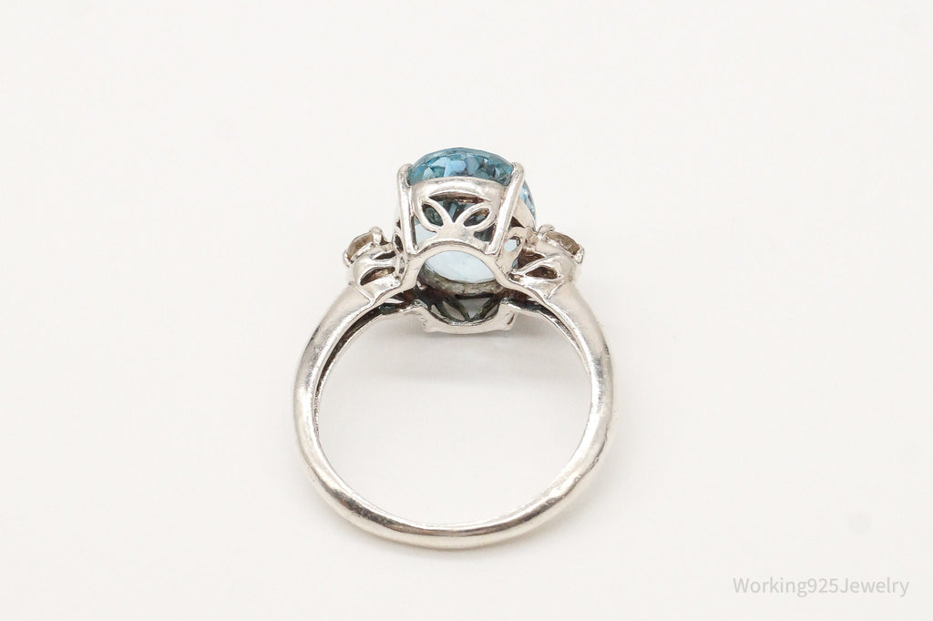 Vintage Blue Topaz Cubic Zirconia Sterling Silver Ring - Size 9.25