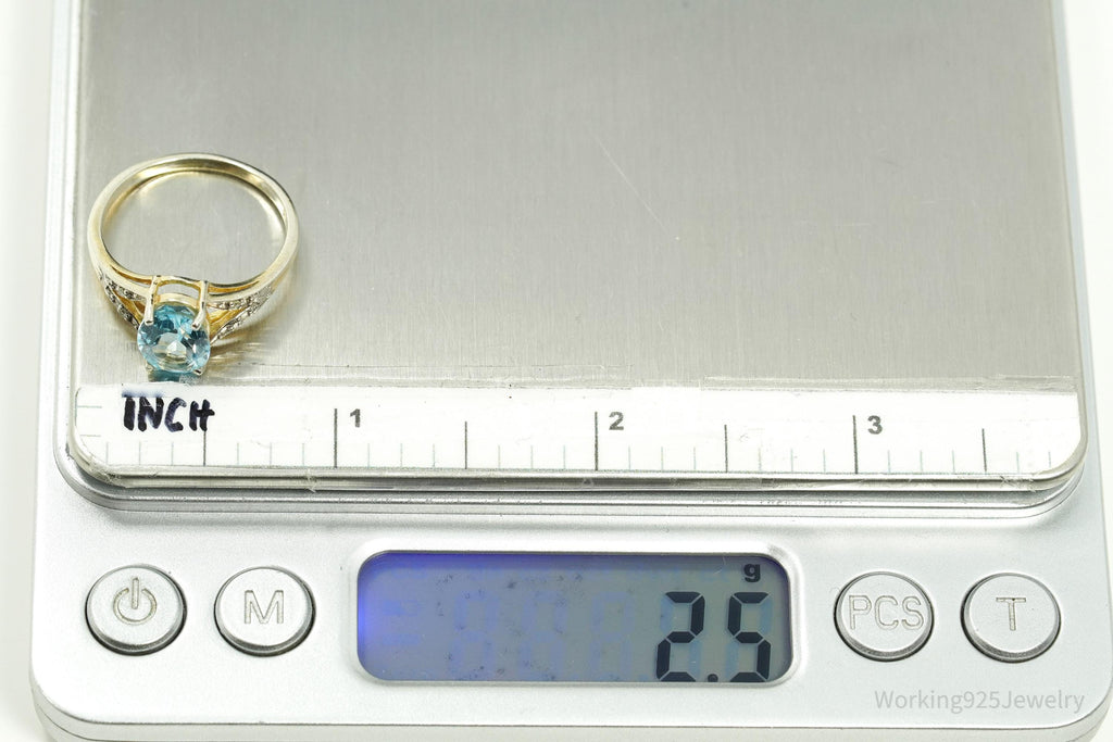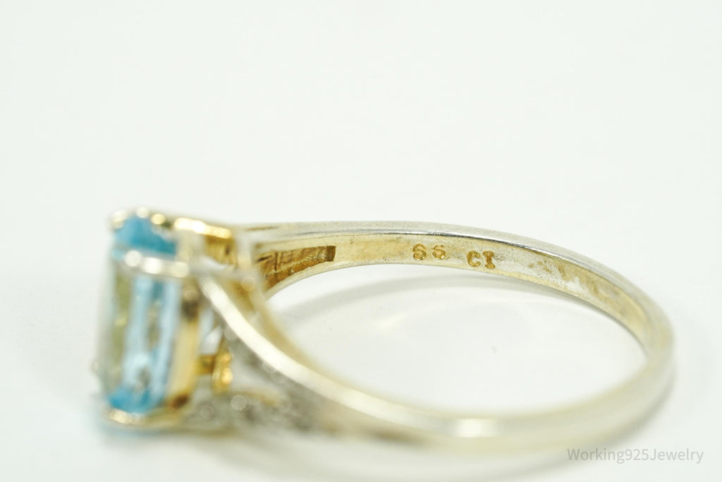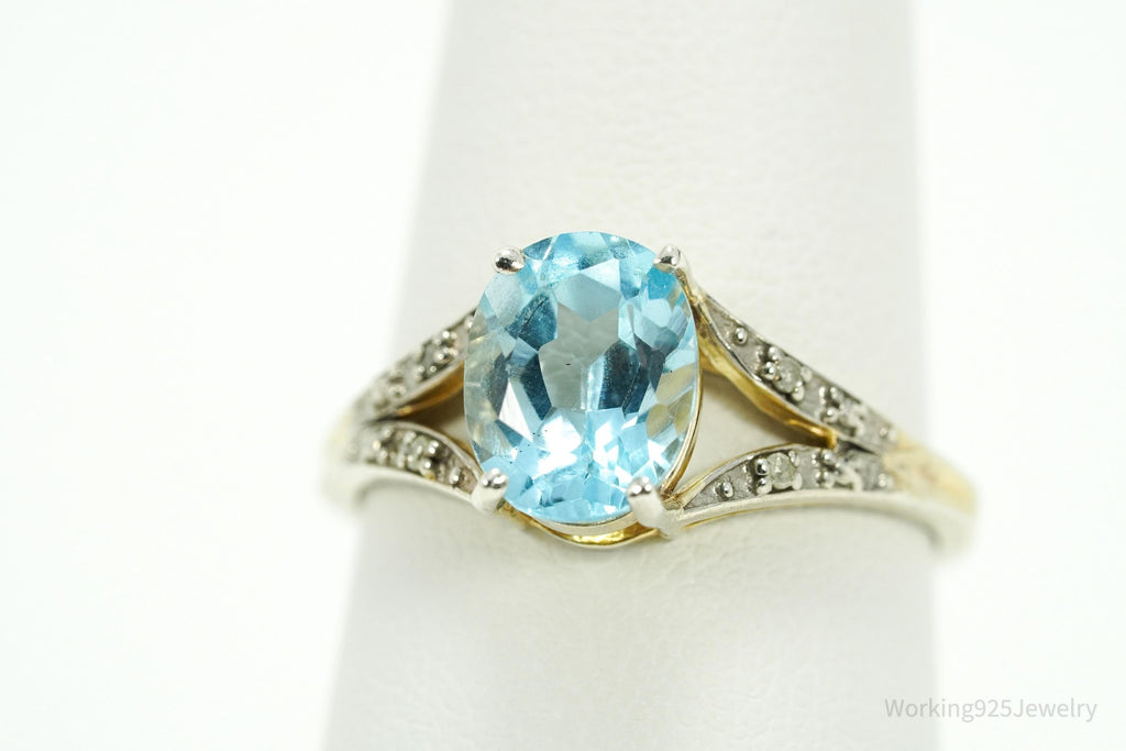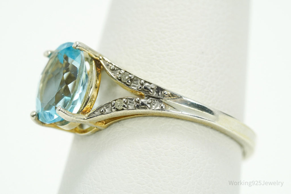 Vintage Blue Topaz & Diamond Gold Wash Sterling Silver Ring - Size 8