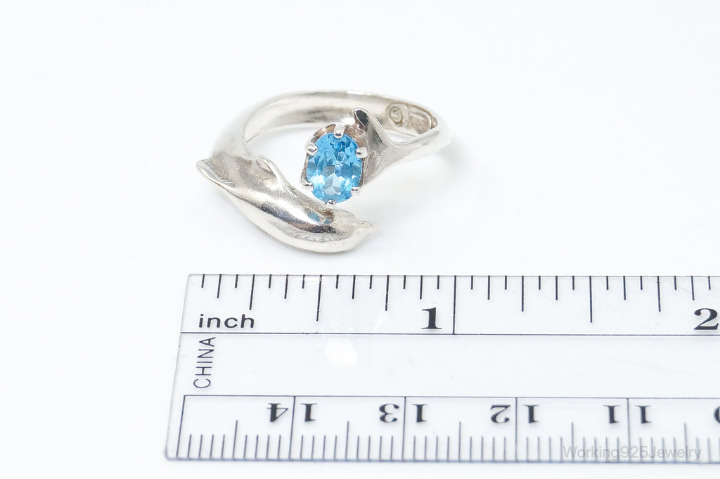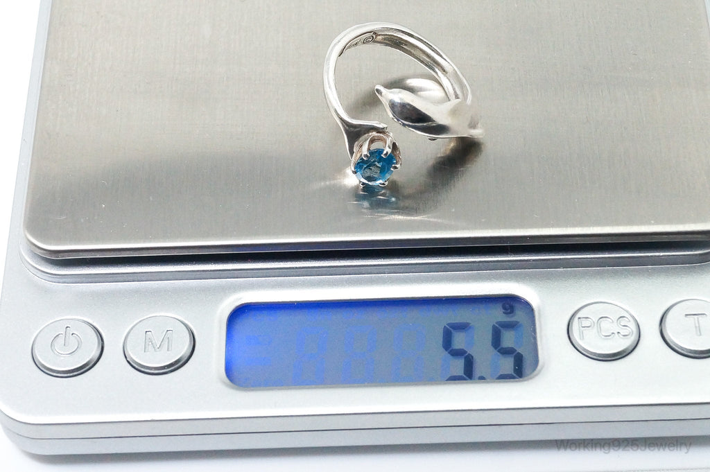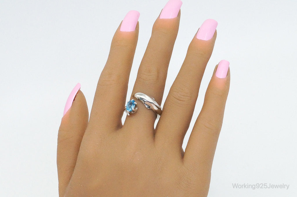 Vintage Blue Topaz Dolphin Sterling Silver Wrap Ring - Size 7.75