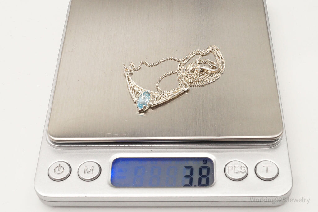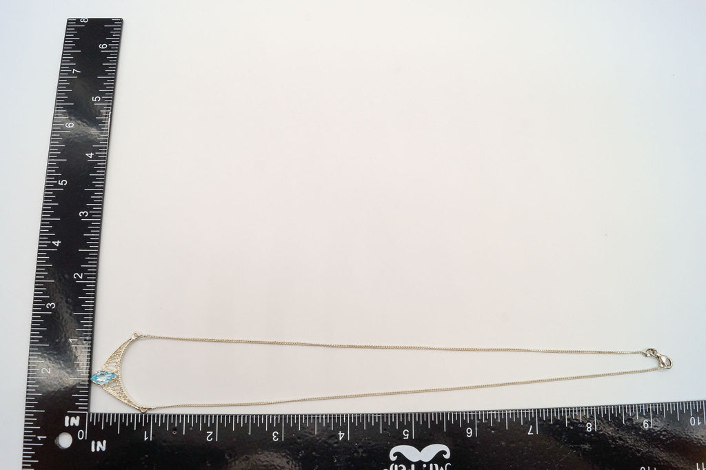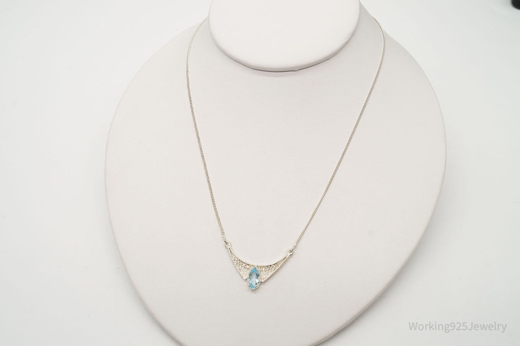 Vintage Blue Topaz Filigree Sterling Silver Chain Necklace