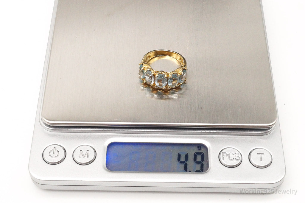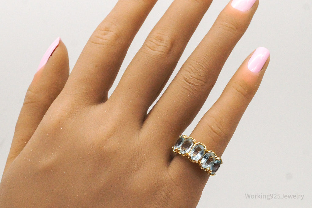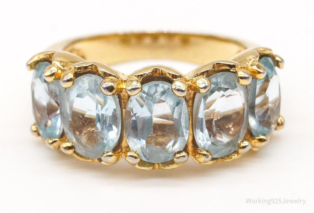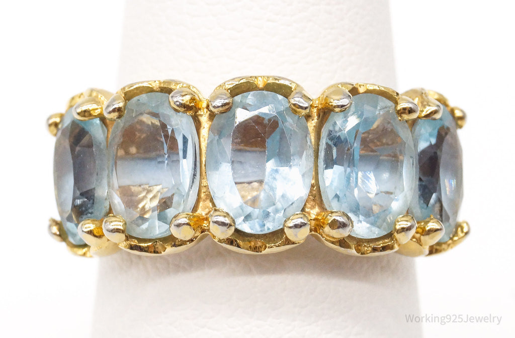 Vintage Blue Topaz Gold Vermeil Sterling Silver Ring - Size 5