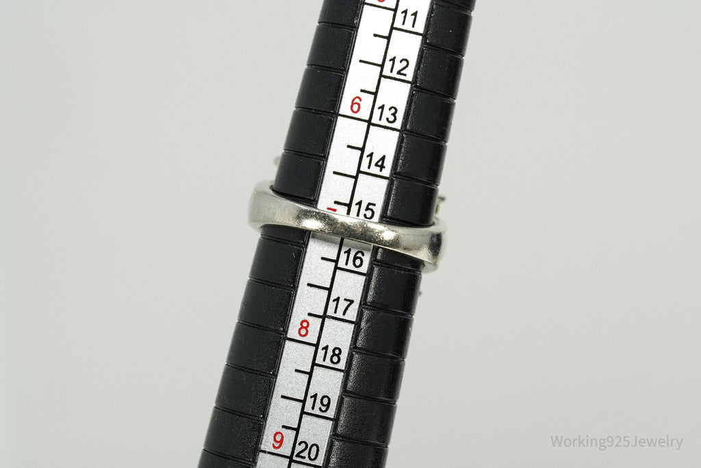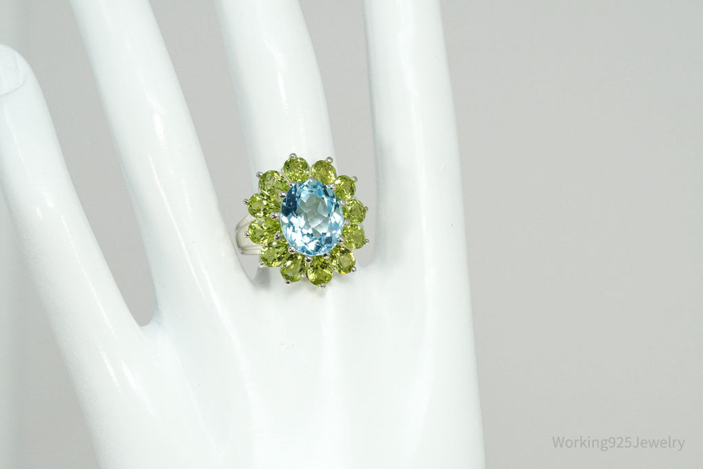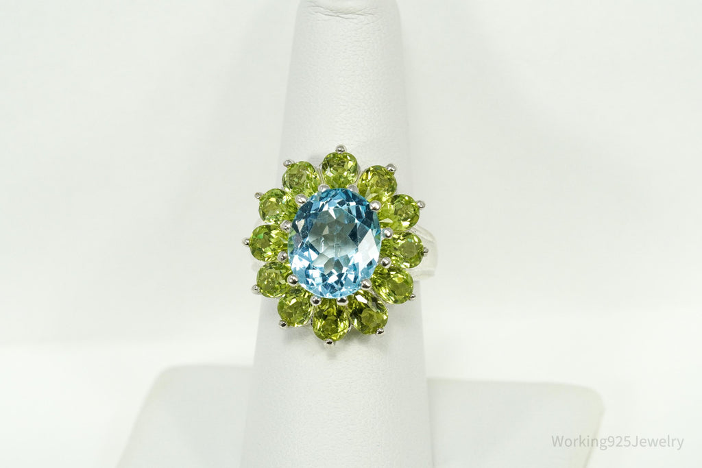 Vintage Blue Topaz & Peridot Sterling Silver Flower Ring - Size 7