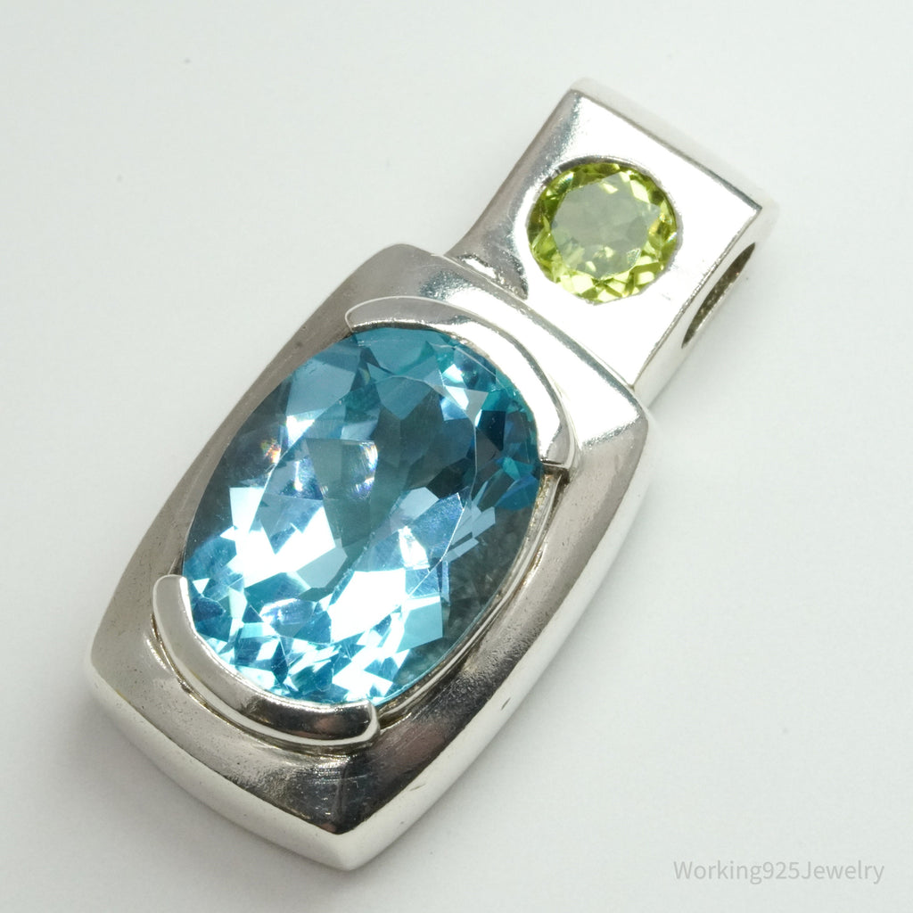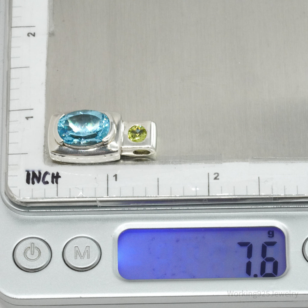 Vintage Blue Topaz & Peridot Sterling Silver Necklace Pendant