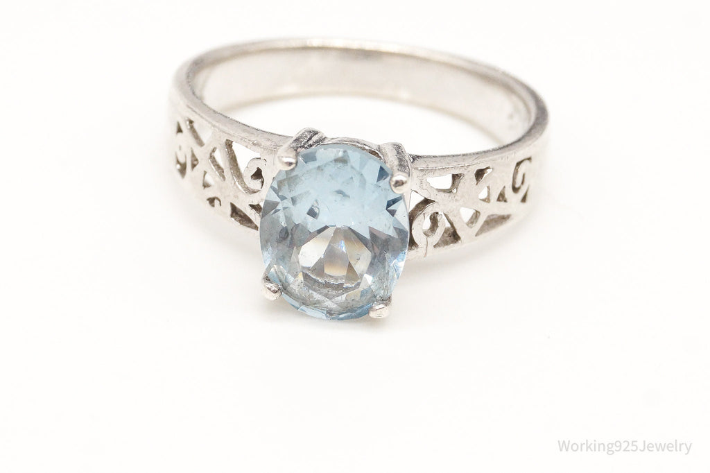 Vintage Blue Topaz Sterling Silver Ring - Size 6.75