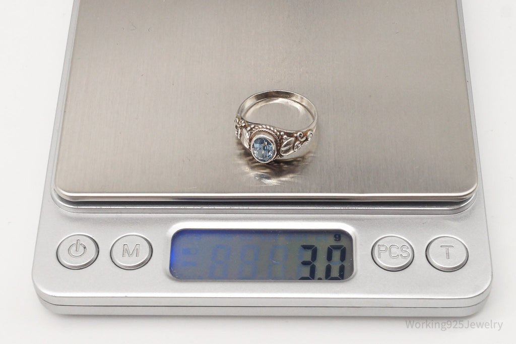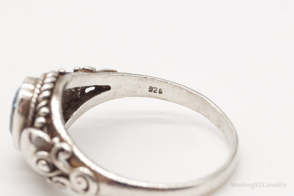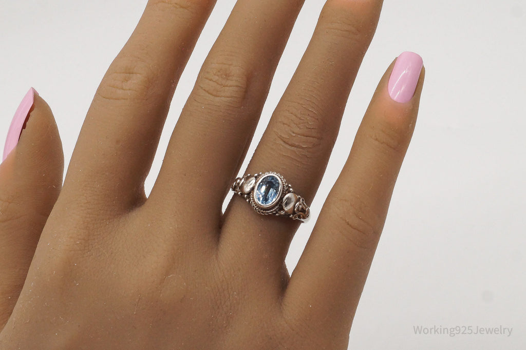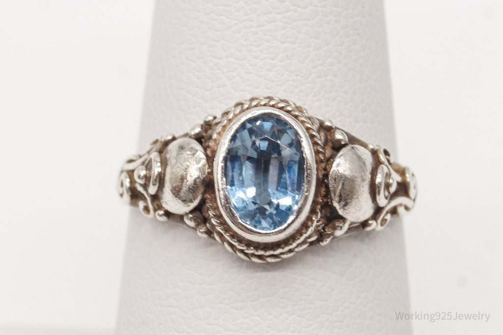 Vintage Blue Topaz Sterling Silver Ring - Size 7.5