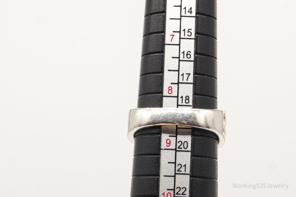 Ring Listings: It is sometimes difficult to determine how a ring will fit without being able to try it on. I always recommend taking your favorite ring to a local jeweler and comparing the way that it sits on a mandrel (ring sizer) with the pictures in the listings prior to purchase. Sometimes wide band rings fit a little differently and I always want my customers to be 100% happy with their purchases! Please let me know if I can help by offering more pictures for size comparison.