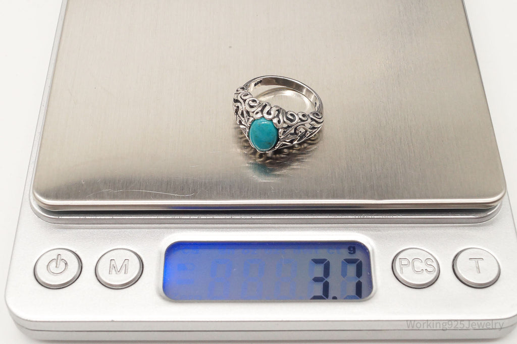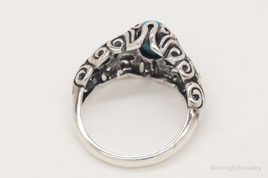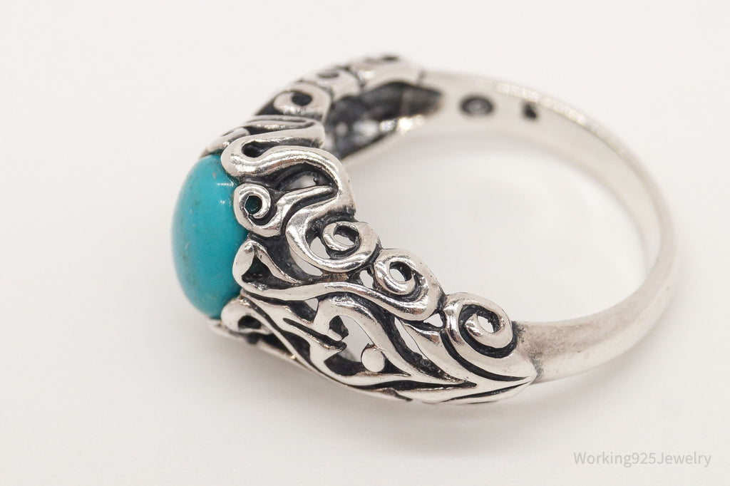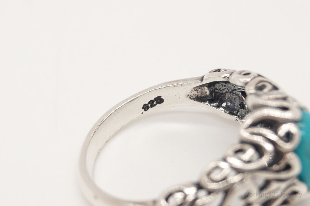Vintage Blue Turquoise Scroll Swirl Sterling Silver Ring - Size 5