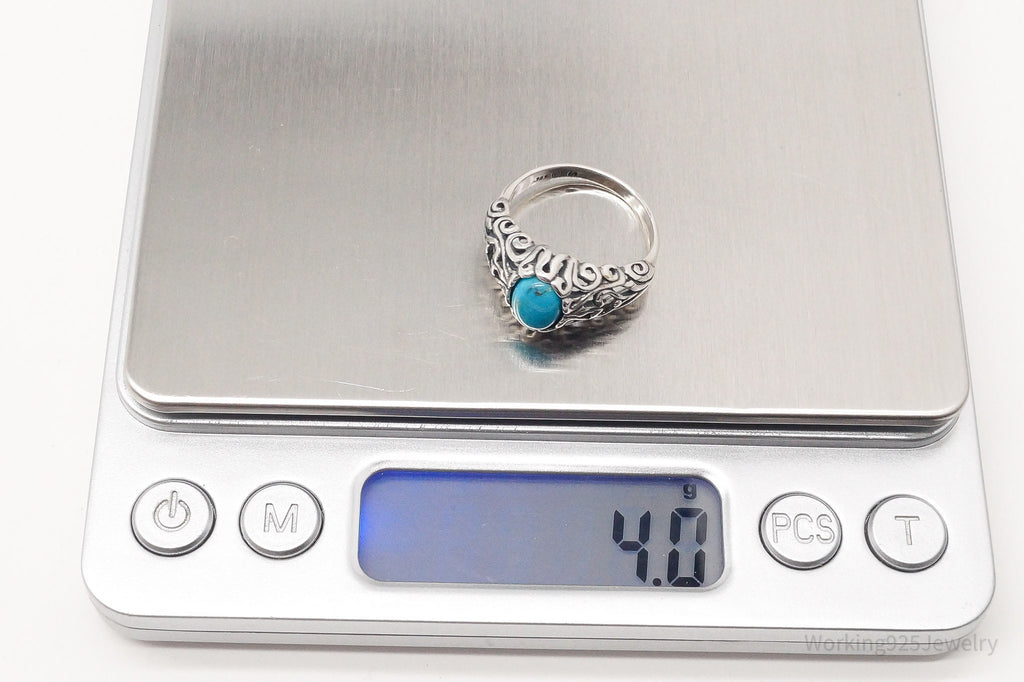 Vintage Blue Turquoise Scroll Swirl Sterling Silver Ring - Size 7.25