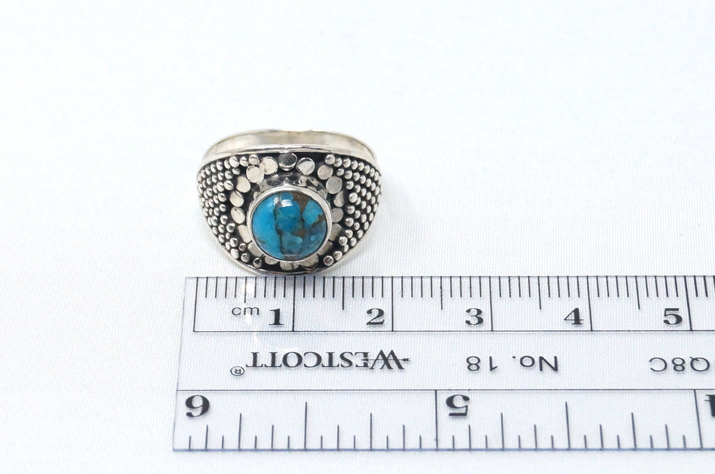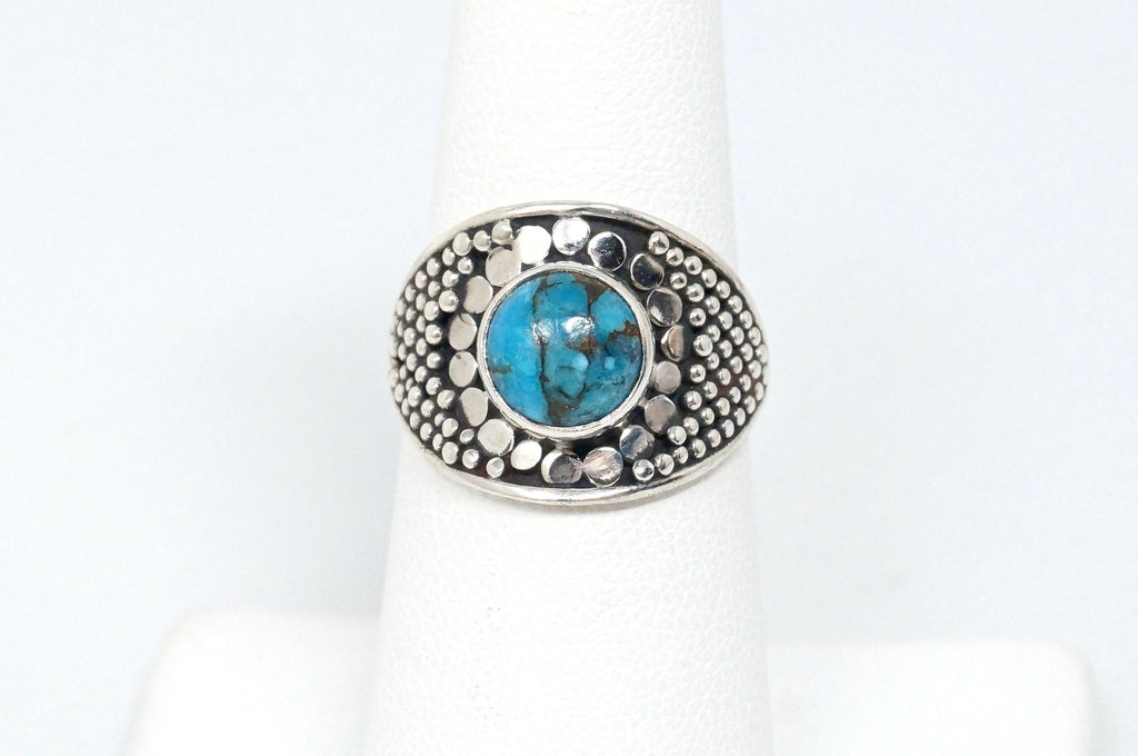 Vintage Blue Turquoise Southwestern Style Ring Sterling Silver - Size 6.75