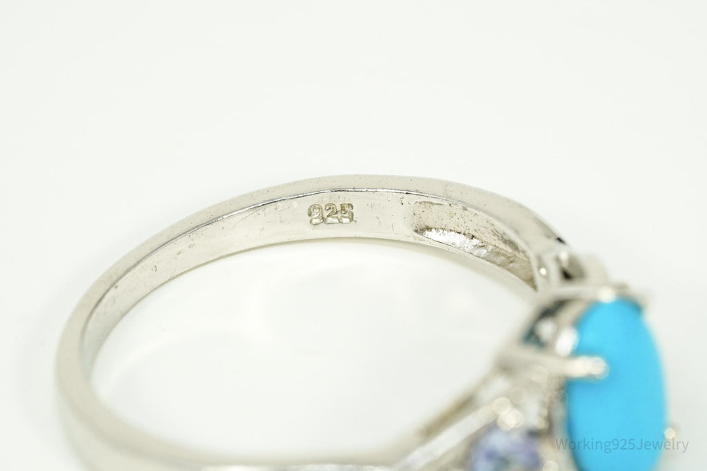 Vintage Blue Turquoise & Tanzanite Sterling Silver Ring - Size 7.25