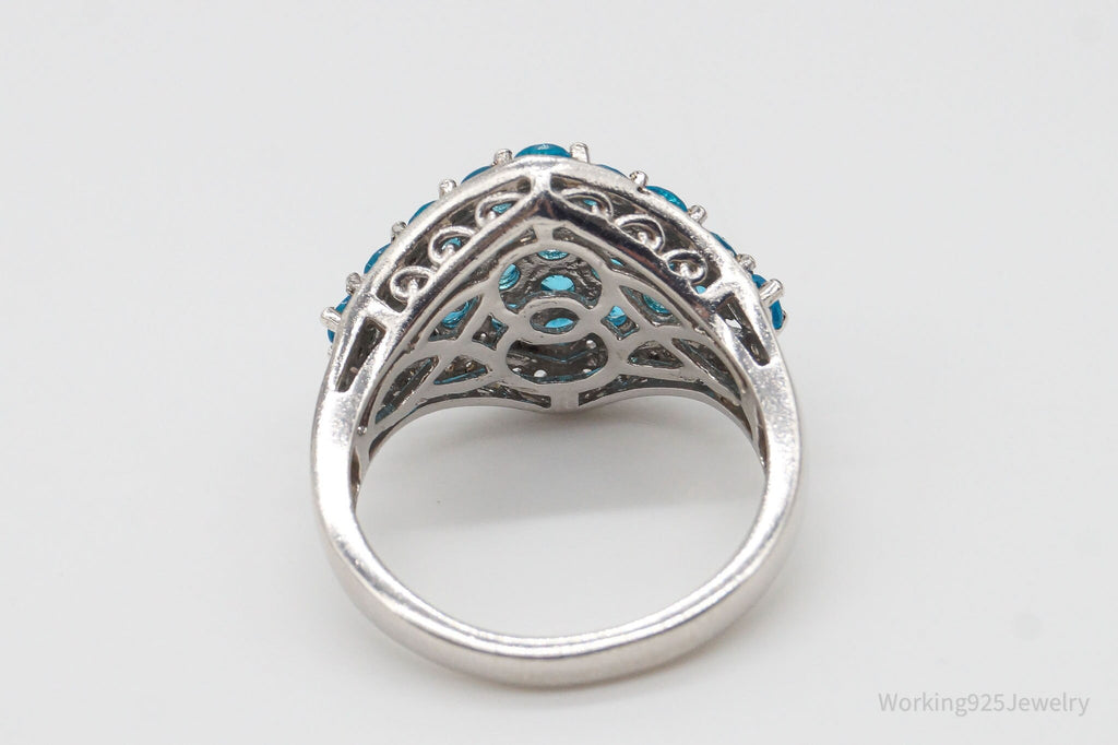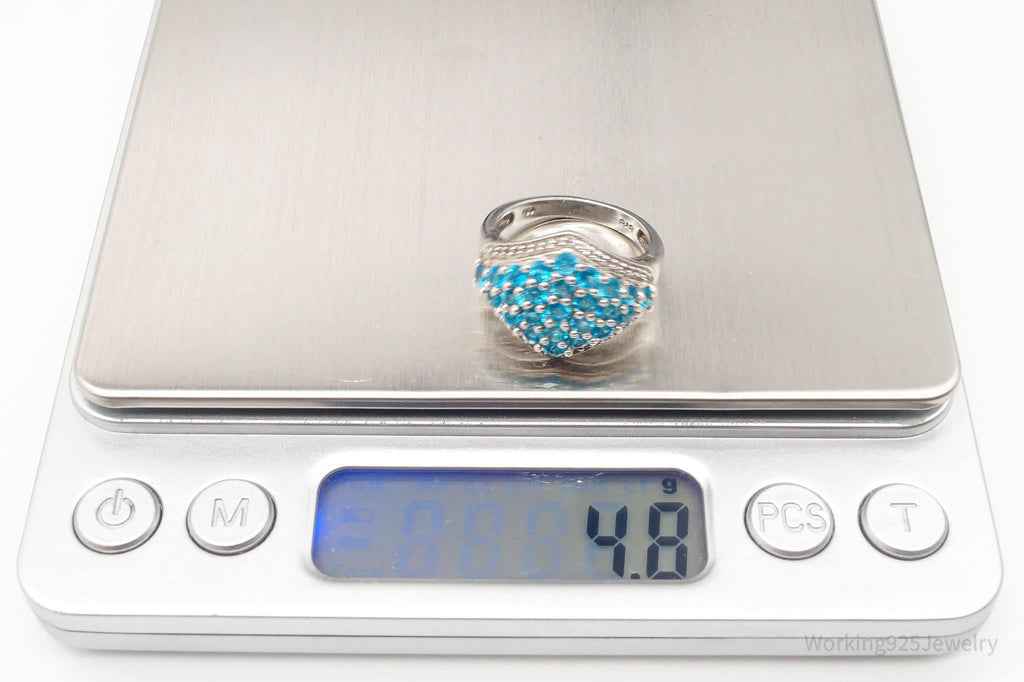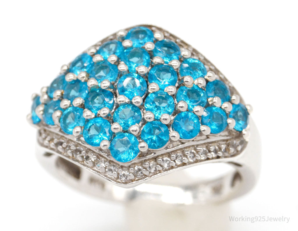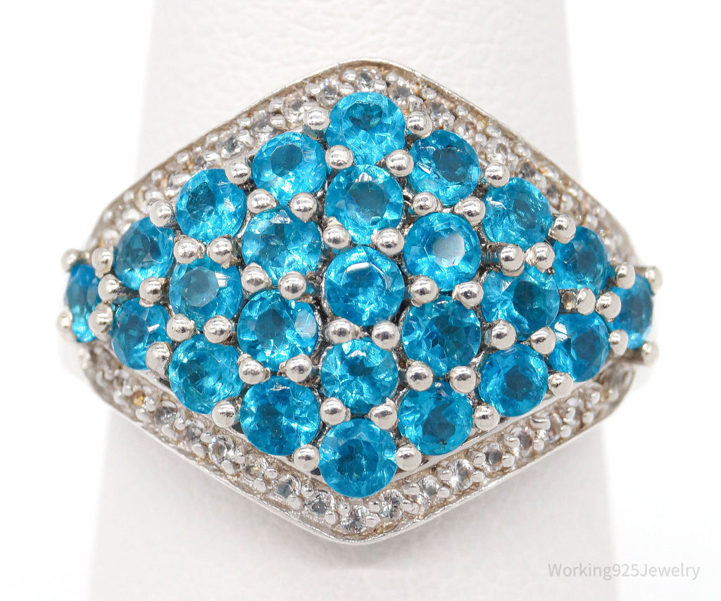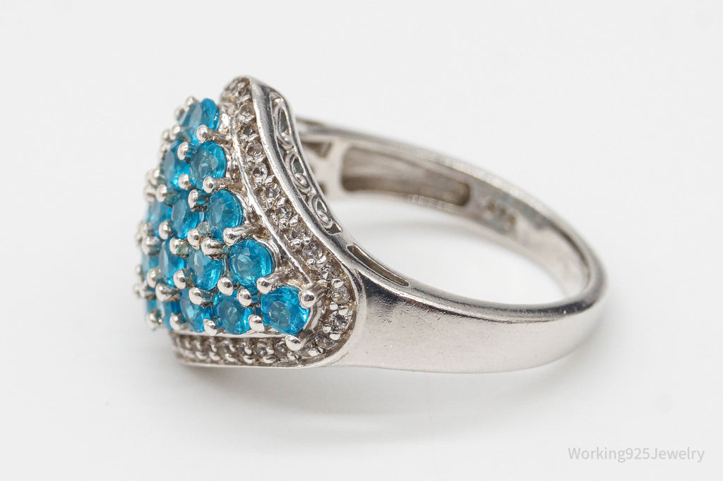 Vintage Blue & White Cubic Zirconia Sterling Silver Ring - Size 7