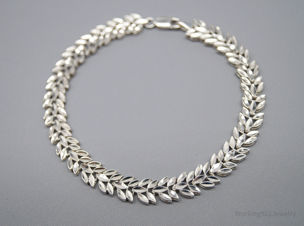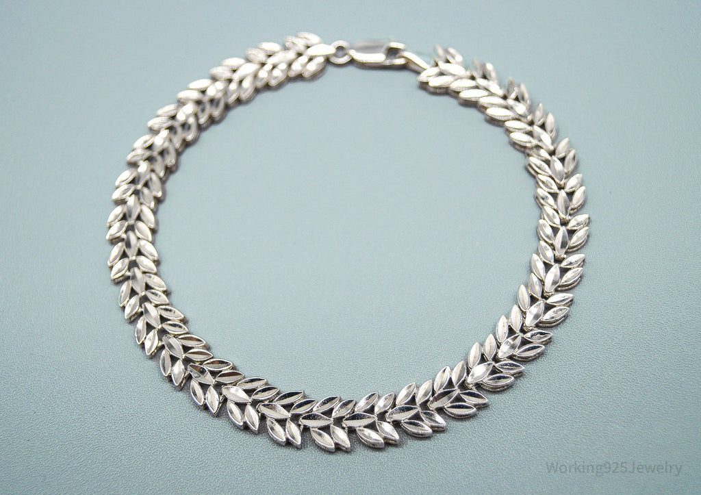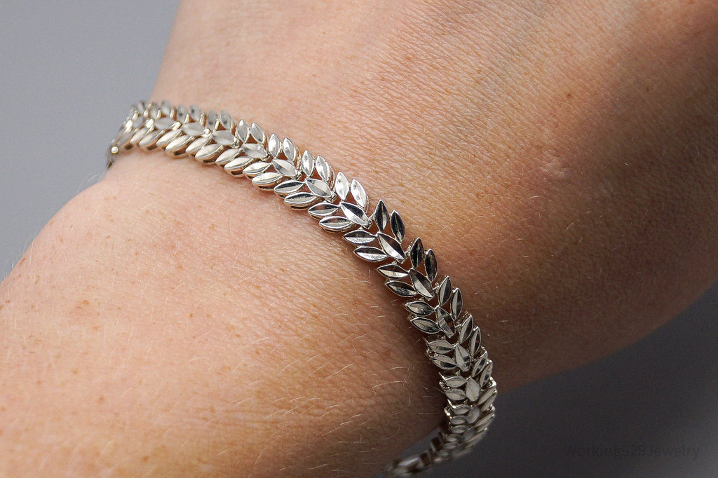Vintage Bolivian Leaf Pattern Sterling Silver Bracelet 7.5"