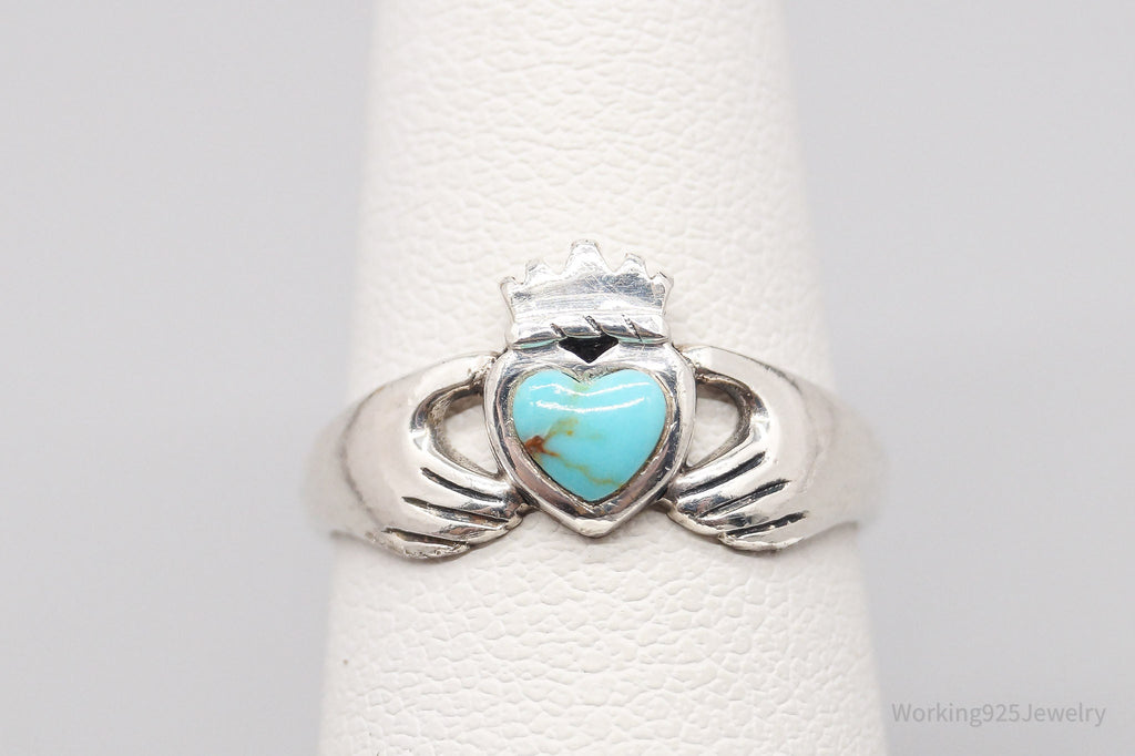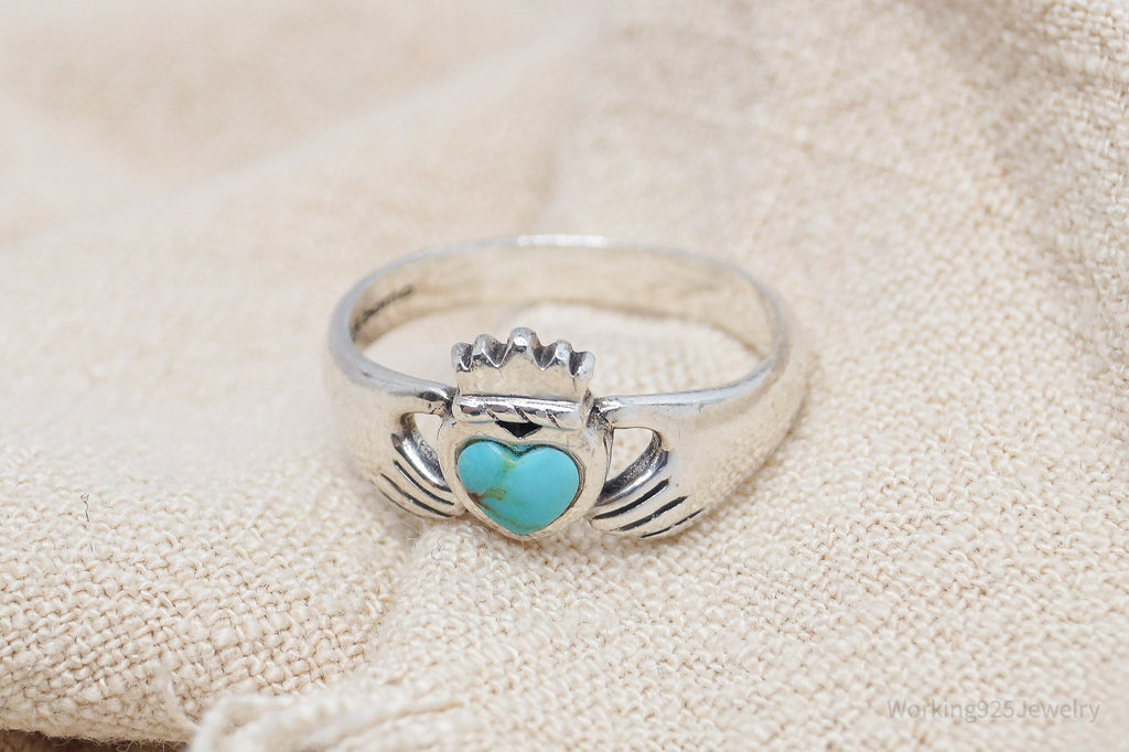 Vintage Boma Claddagh Turquoise Heart Sterling Silver Ring - Size 5.75