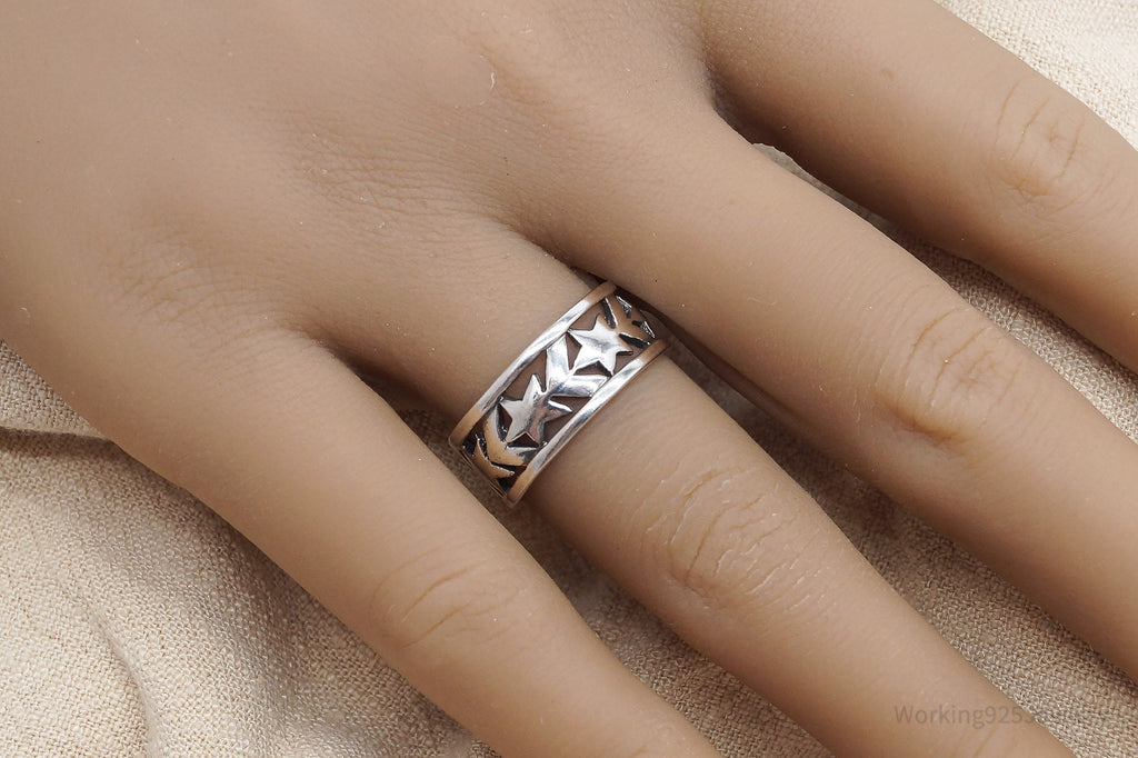 Vintage Boma Star Pattern Sterling Silver Band Ring - Size 7.25