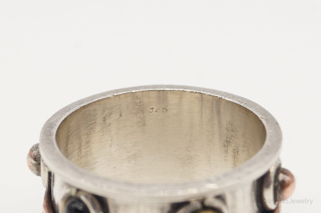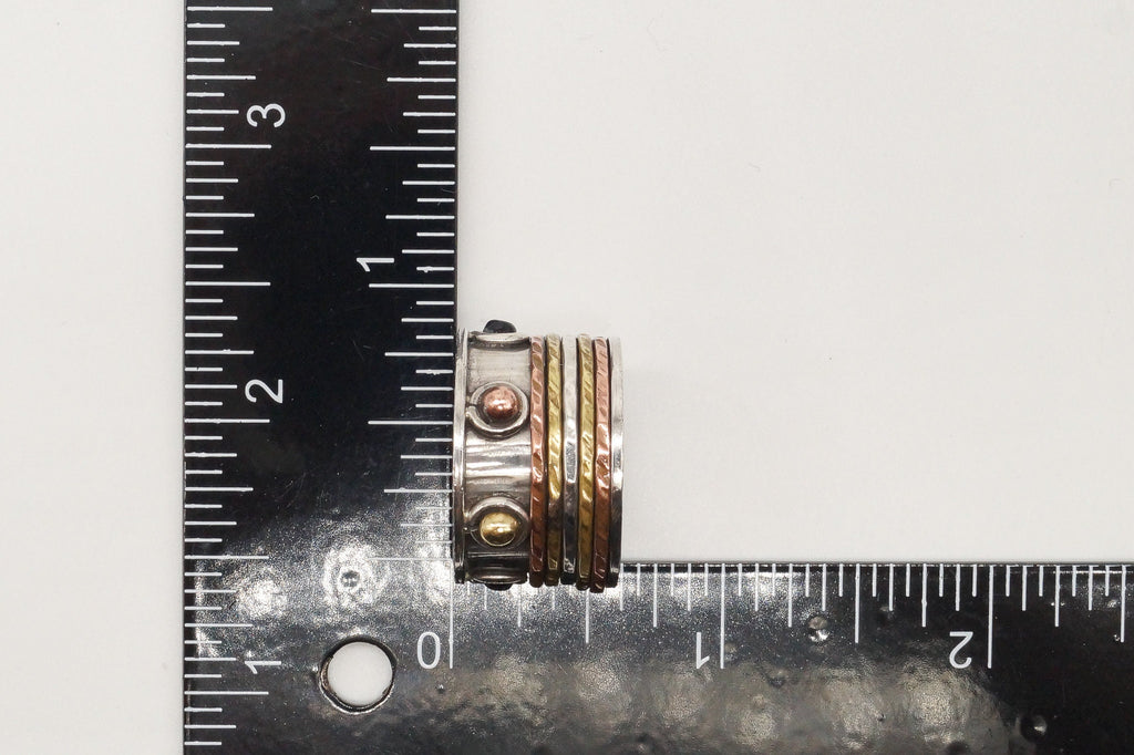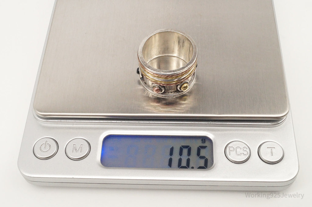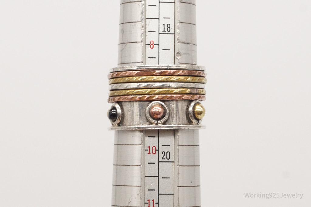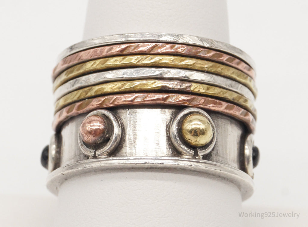 Vintage Brass Copper Black Onyx Sterling Silver Spinner Band Ring- Size 9