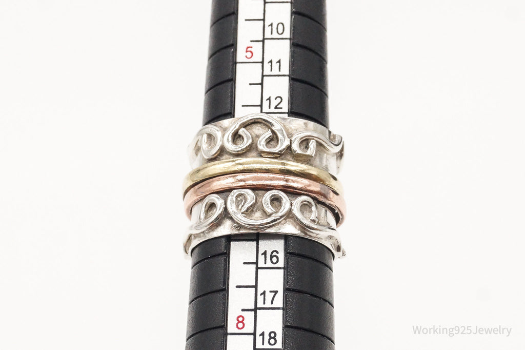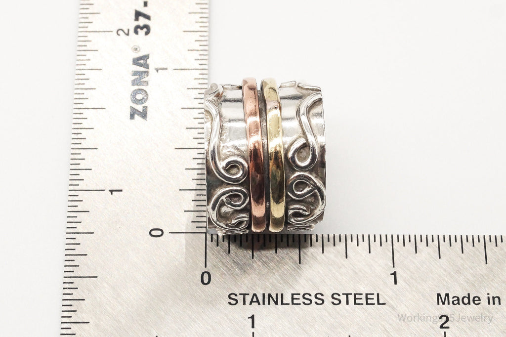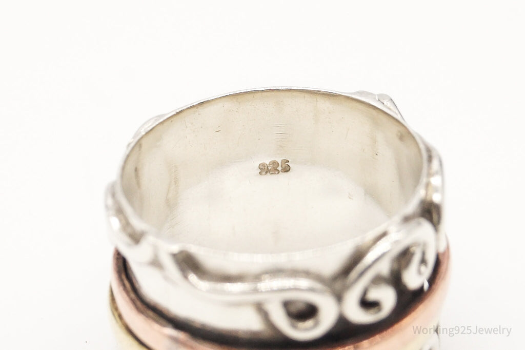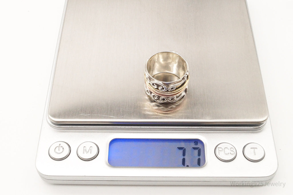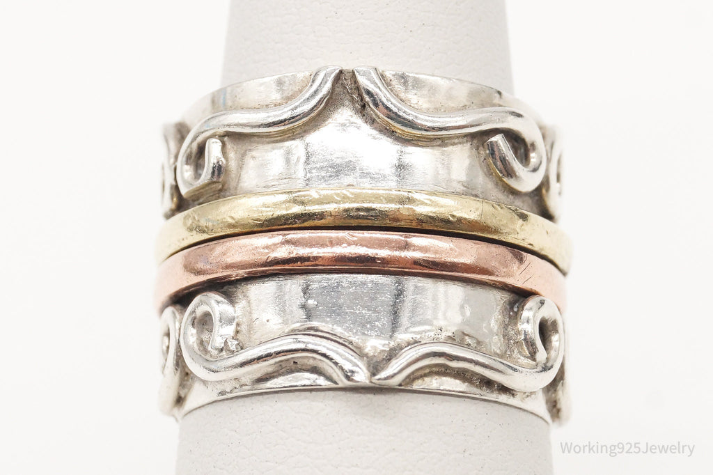 Vintage Brass Copper Sterling Silver Spinner Band Ring- Size 7