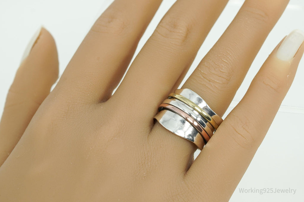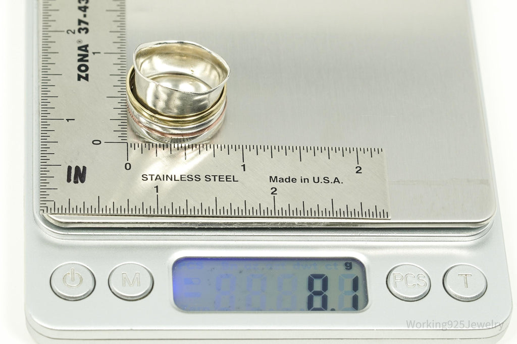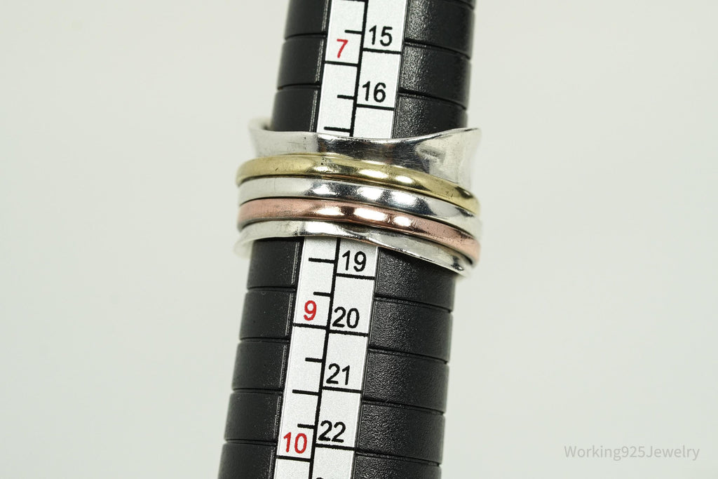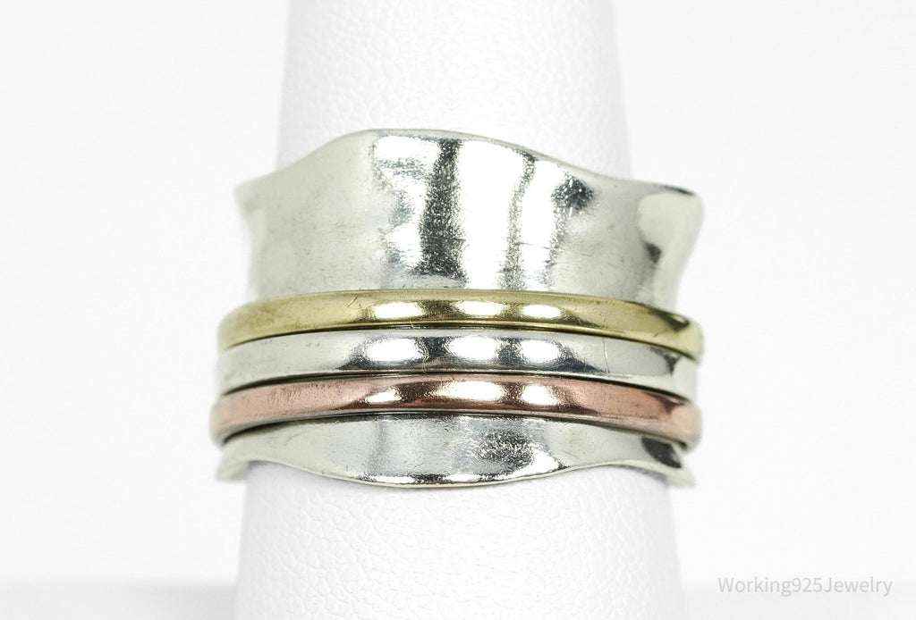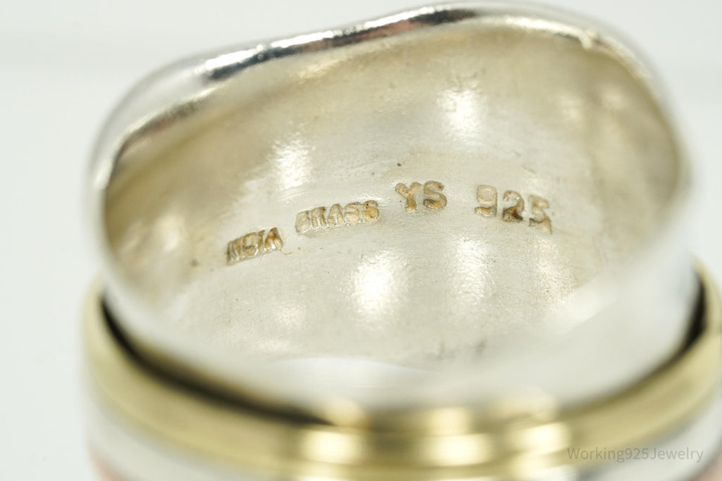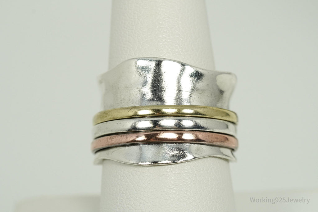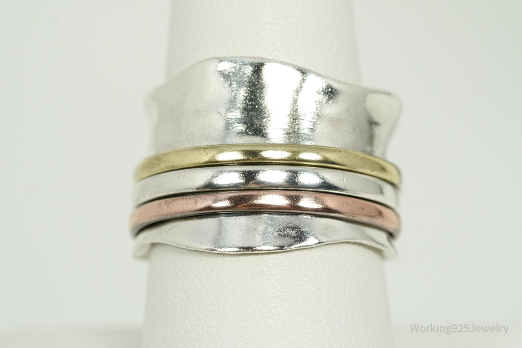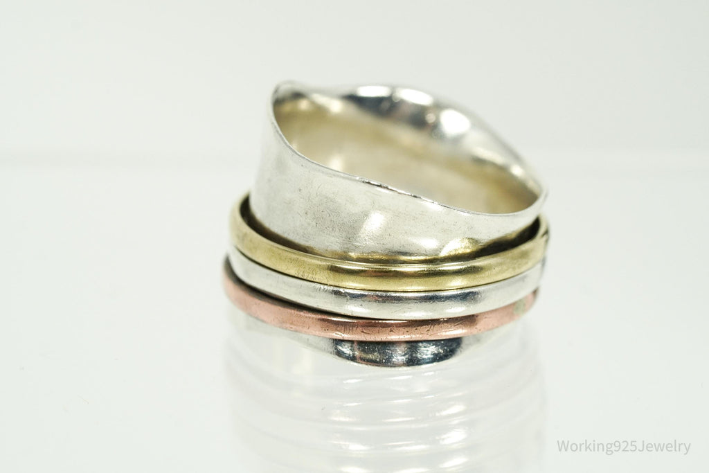 Vintage Brass & Copper Sterling Silver Spinner Band Ring- Size 8.25