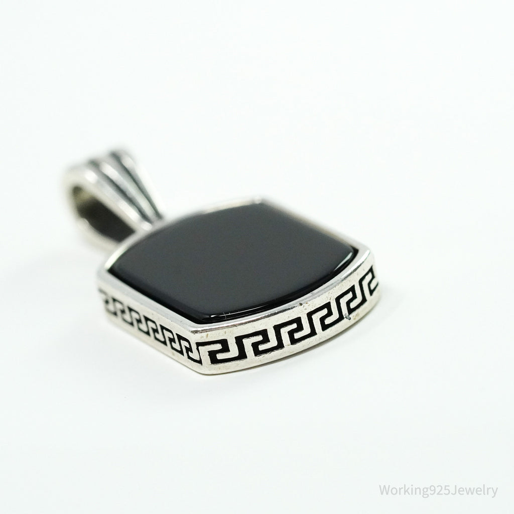 Vintage BS Black Onyx Sterling Silver Necklace Pendant