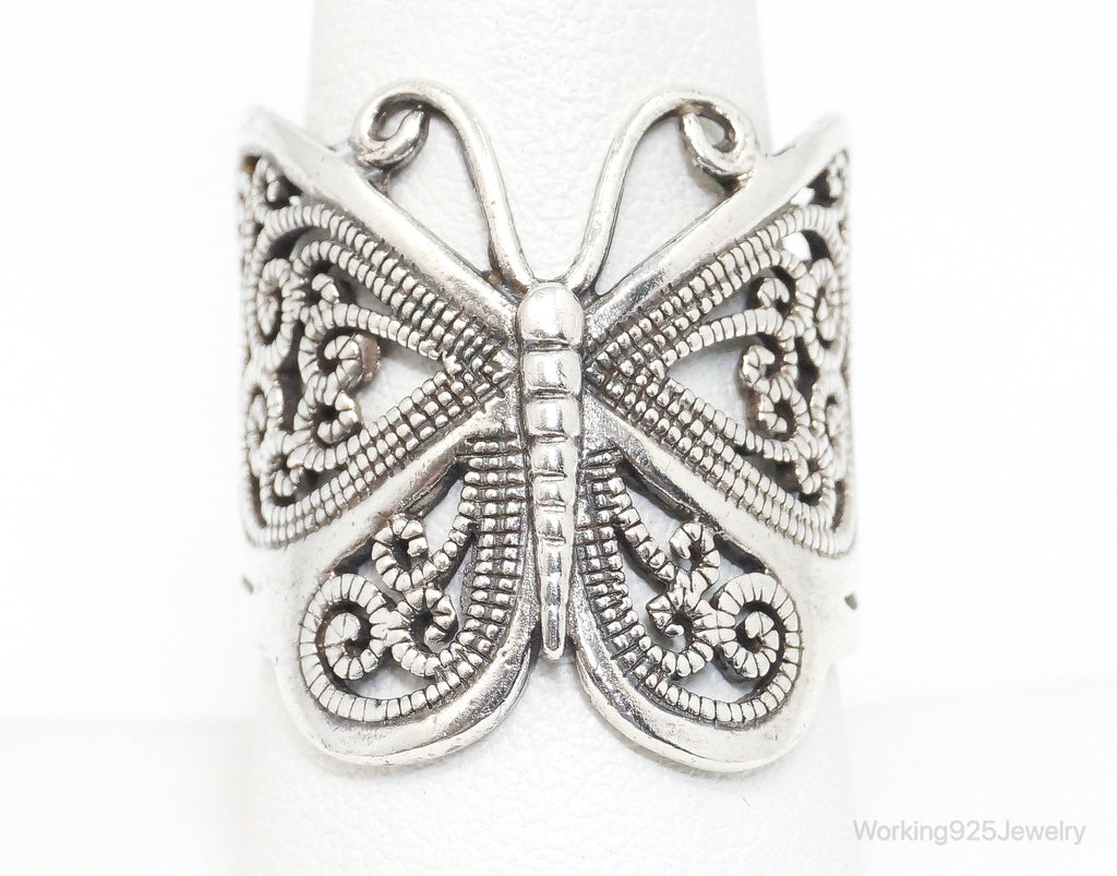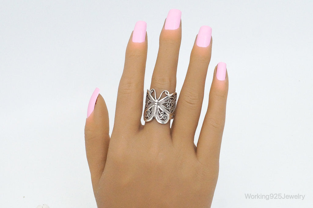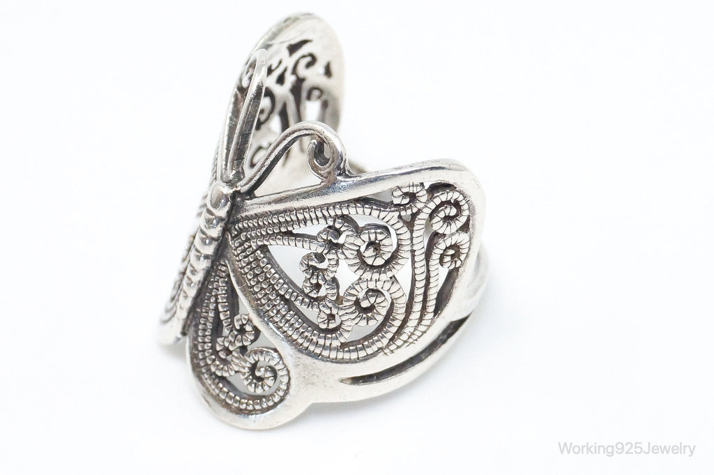 Vintage Butterfly Scroll Sterling Silver Ring - Size 8.75