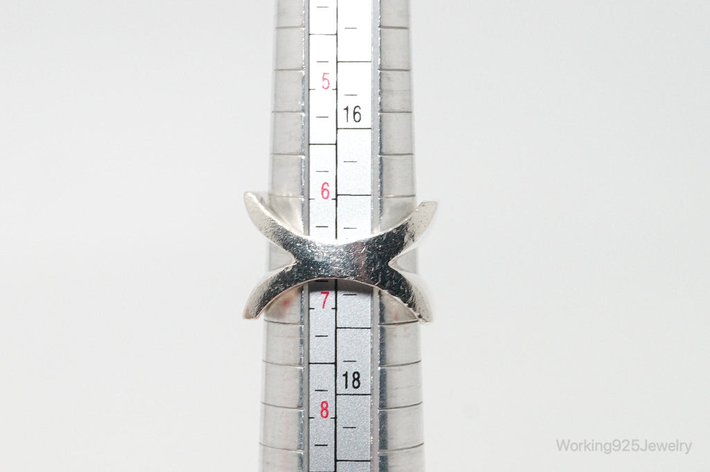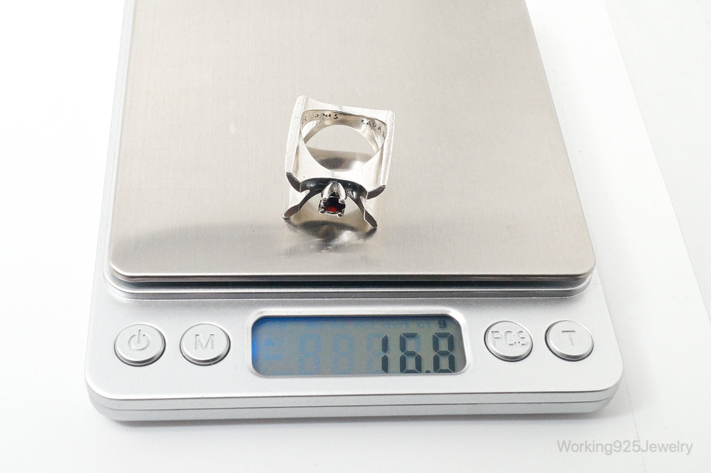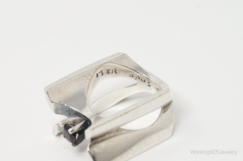 Vintage Canada Modernist OPUS Red CZ Sterling Silver Ring - Size 6.75