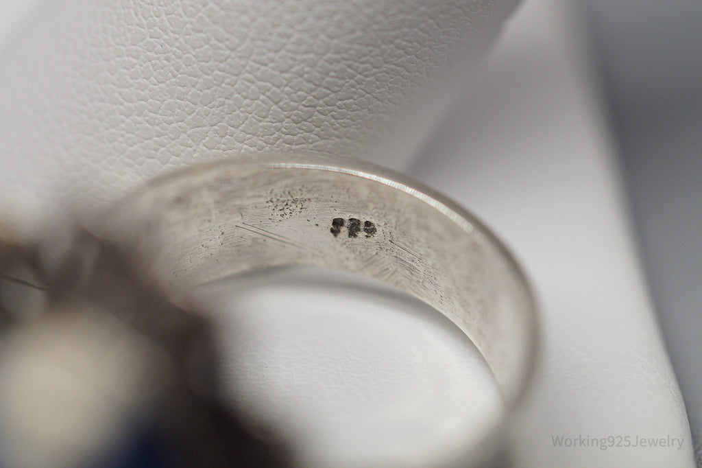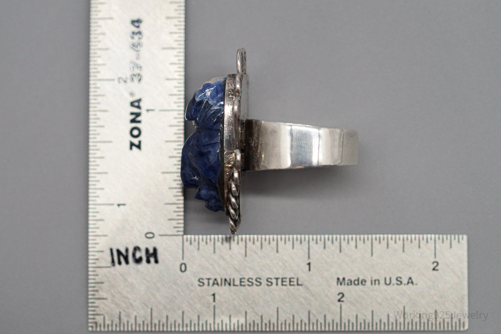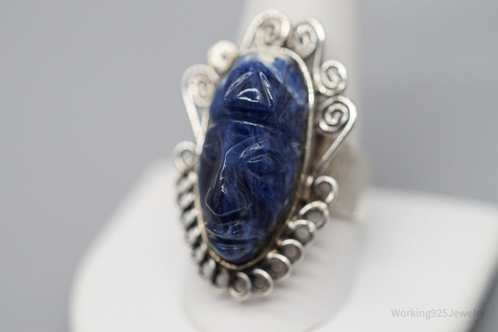 Vintage Carved Sodalite Aztec Mayan Mask Sterling Silver Ring Size 10.5