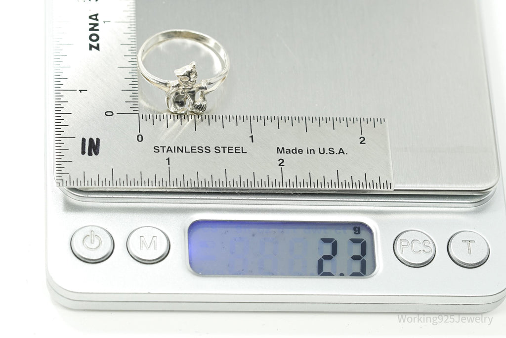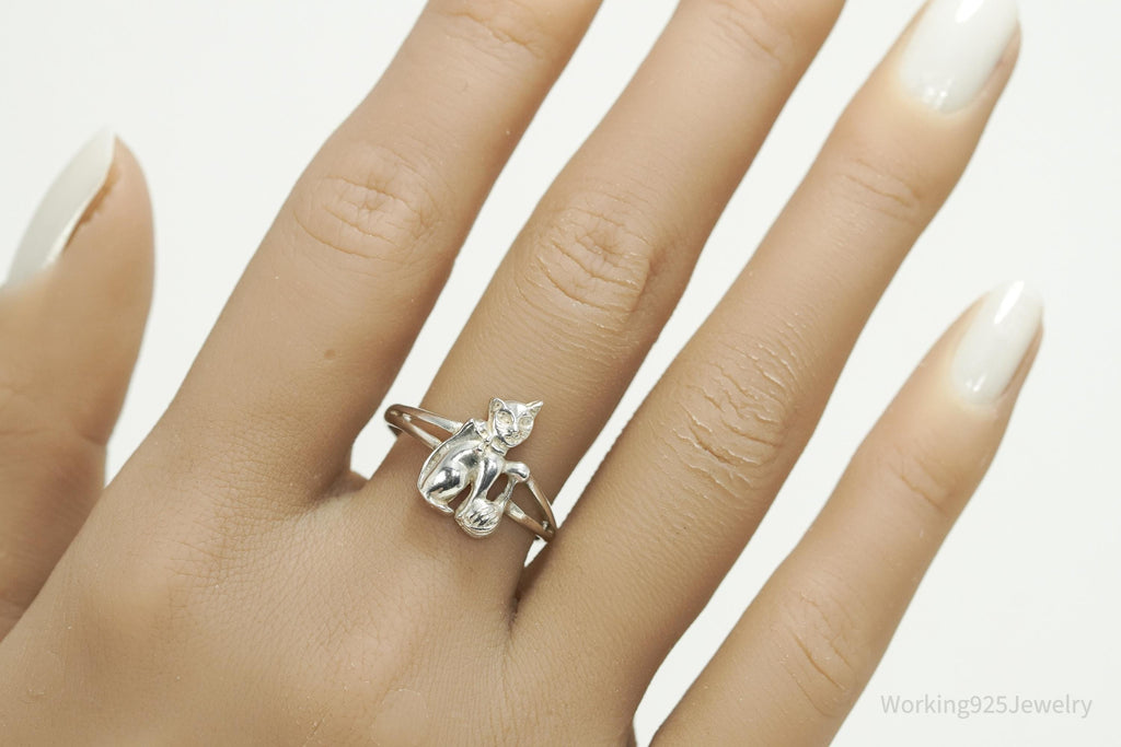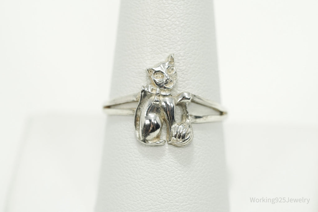 Vintage Cat & Yarn Sterling Silver Ring - Size 9.25