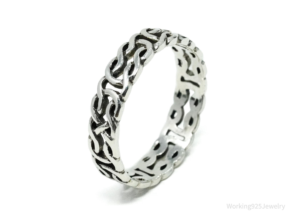 Vintage Celtic Knot Design Sterling Silver Band Ring - Size 13